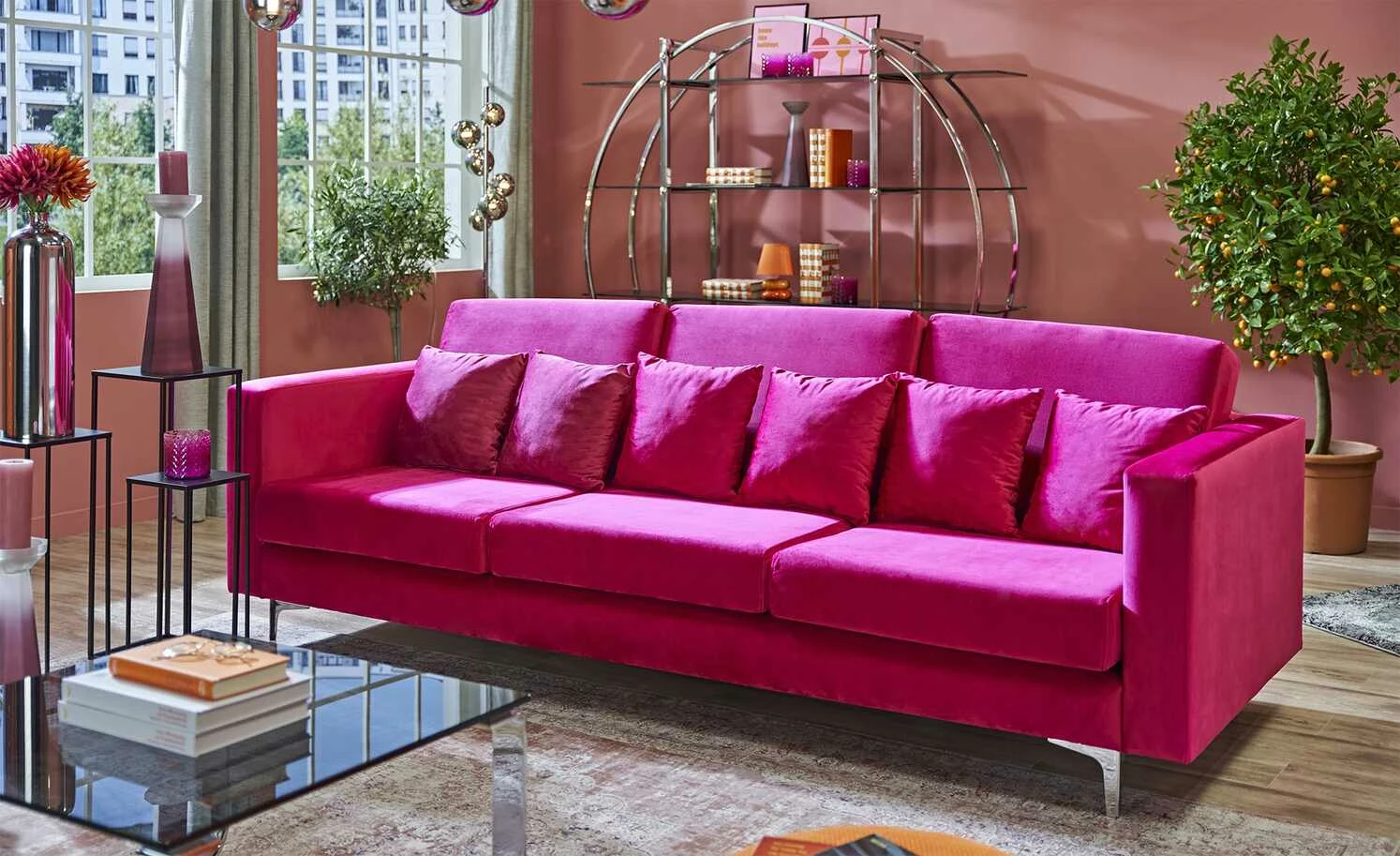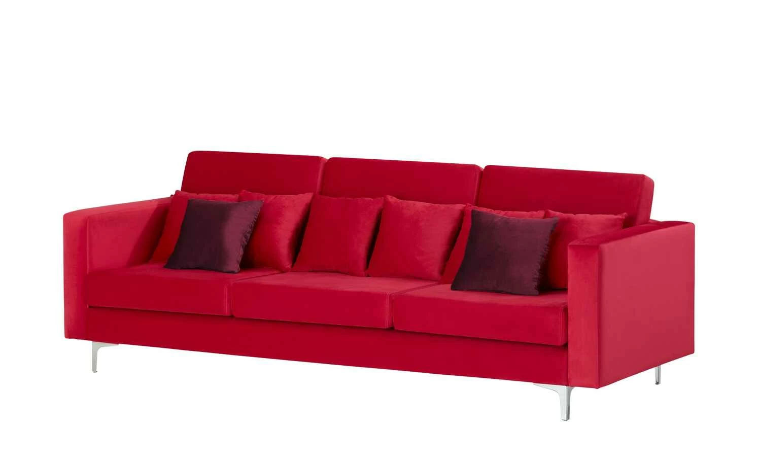 Mit dem Bigsofa Miami nutzen Sie Ihre vier Wände optimal aus. Der Rücken des Sofas ist echt bezogen, damit es ohne Probleme mittig im Raum aufgestellt werden kann. Der Bezug aus Velour verleiht der Sitz- und Rückenfläche vortrefflichen Sitzkomfort. Auf diesem Sofa mit einer Polsterung aus Schaumstoff sitzen Sie immer bequem. Das Modell Miami steht sicher auf geschmackvollen Füßen aus Metall. Sie werden dank der hübschen Zierkissen als Zubehör sehr viel Freude mit diesem Sofa haben. Das Sofa wird durch die Sitztiefe von 58 cm zu einer regelrechten Oase der Gemütlichkeit, nimmt insgesamt 88 × 245 cm ein und weist eine Sitzhöhe von 42 cm auf. Dieses Sofa wertet Ihr Zuhause auf praktische und ansprechende Art und Weise auf.