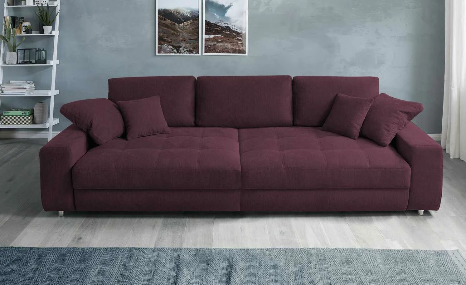 Besonders viel Platz für Freunde und Familie bietet das Big Sofa Arissa de Luxe. Die hochwertige Boxspringpolsterung unter der gesteppten, 81 Zentimeter tiefen Sitzfläche und die Wellenunterfederung sorgen für langanhaltenden, hohen Komfort. Das gesamte Sofa ist mit einem strapazierfähigem Webstoff bezogen, ebenso wie die insgesamt sieben Kissen. Sie können Arissa de Luxe daher problemlos auch mittig im Raum platzieren. Runde Metallfüße in Chrom-Optik veredeln das Erscheinungsbild des Sofas.