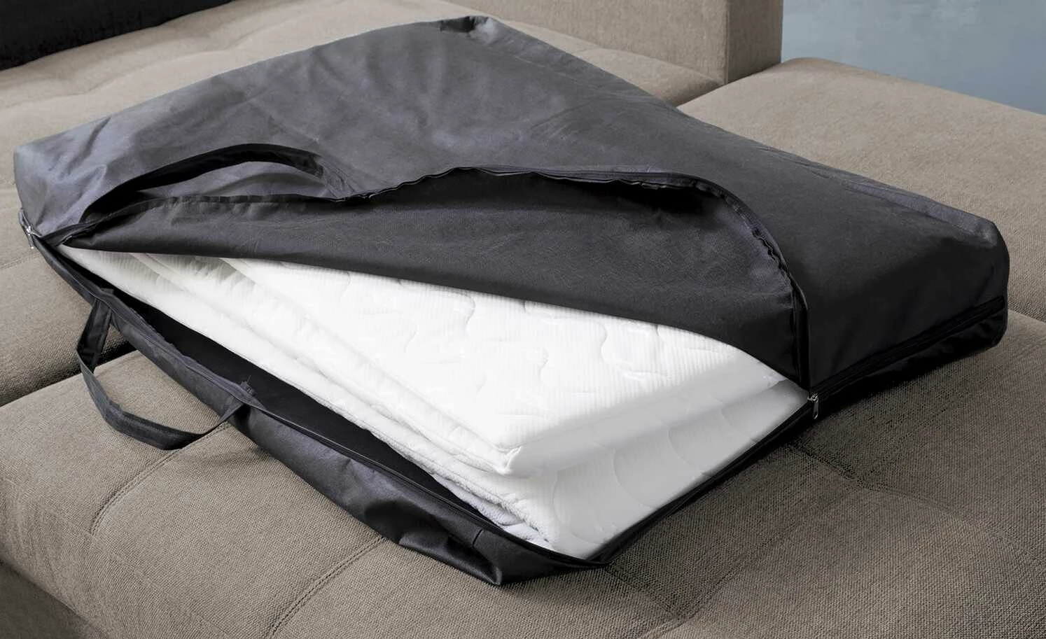 - Lieferumfang / mitgeliefertes Zubehör: 2 Zierkissen, Topper mit Transporttasche, 3 Rückenkissen
