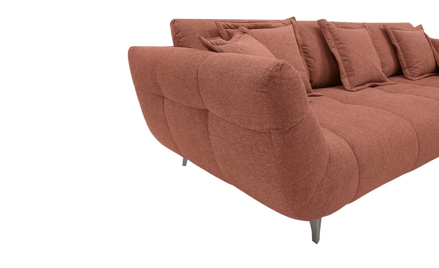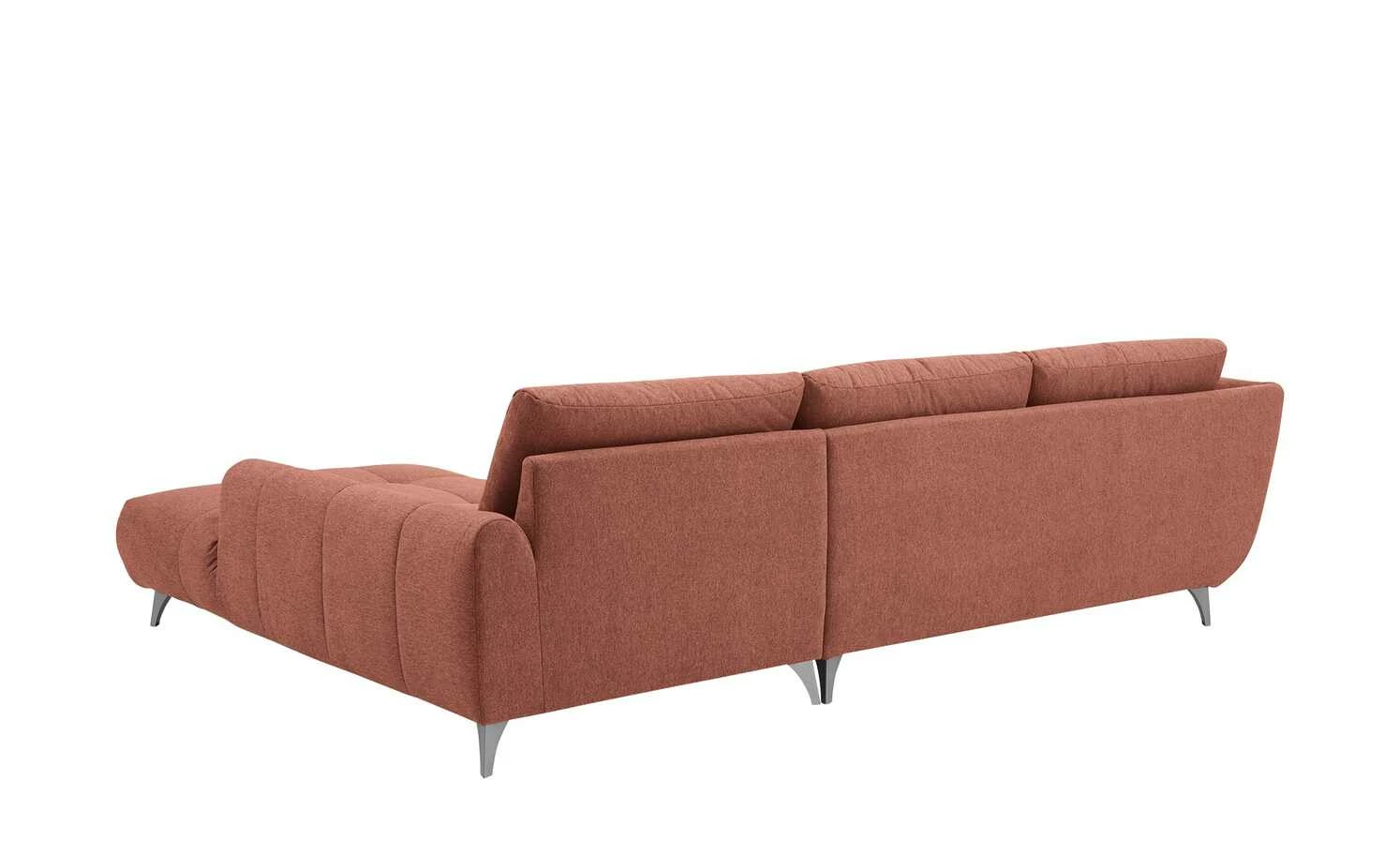 Das Ecksofa Bellani ist richtig komfortabel – und sieht dabei auch noch stylisch aus. Bellani hat eine halbhohe Rückenlehne. Der Sitzbereich ist formschön abgesteppt. Die Couch ist mit einem strapazierfähigen Stoff bezogen. Dieser befindet sich auch auf der Rückseite. Dadurch können Sie sie flexibel im Wohnzimmer platzieren. Unterhalb des Bezugs sorgt ein Federkern für die Bequemlichkeit. Bellani wird mit fünf Zierkissen geliefert.