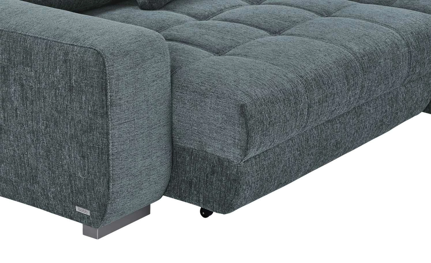 Wenn ein Sofa eine Eigenschaft haben sollte, dann ist es gemütlich sein. Deshalb empfehlen wir das Ecksofa Caro von bobb. Durch die L-Form ergibt sich eine Sitzfläche mit Platz zum Hochlegen der Beine. Ein Teil des Sofas ist zudem mit einer elektronischen Sitztiefenverstellung ausgestattet. Dabei können Sie die Sitzfläche durch einen einfachen Knopfdruck nach vorne vorziehen. Caro ist mit einem formstabilen Polyätherschaum gepolstert, der zusätzlich von einer Nosag-Wellenunterfederung unterstützt wird. Sie sorgt für eine noch bessere Abfederung der Sitzfläche. Die Couch ist rundherum mit einem weichen, melierten Webstoff bezogen, die über eine sogenannte Nano-Ummantelung verfügt. Sie sorgt dafür, dass das Ecksofa auch für Hausstaubmilbenallergiker geeignet ist. Die Aquaclean-Technologie des Bezuges ermöglicht eine leichte Reinigung mithilfe von Wasser.