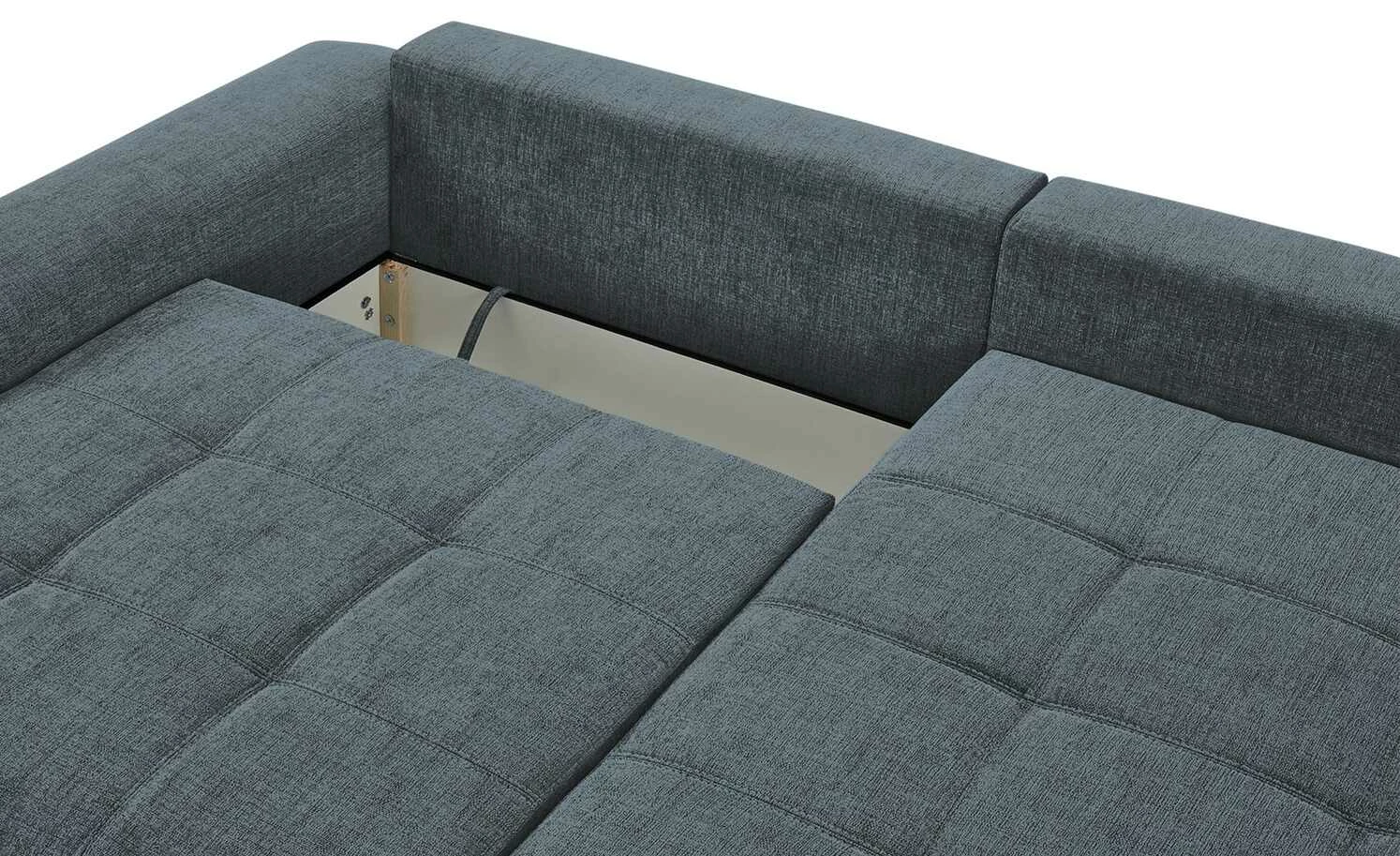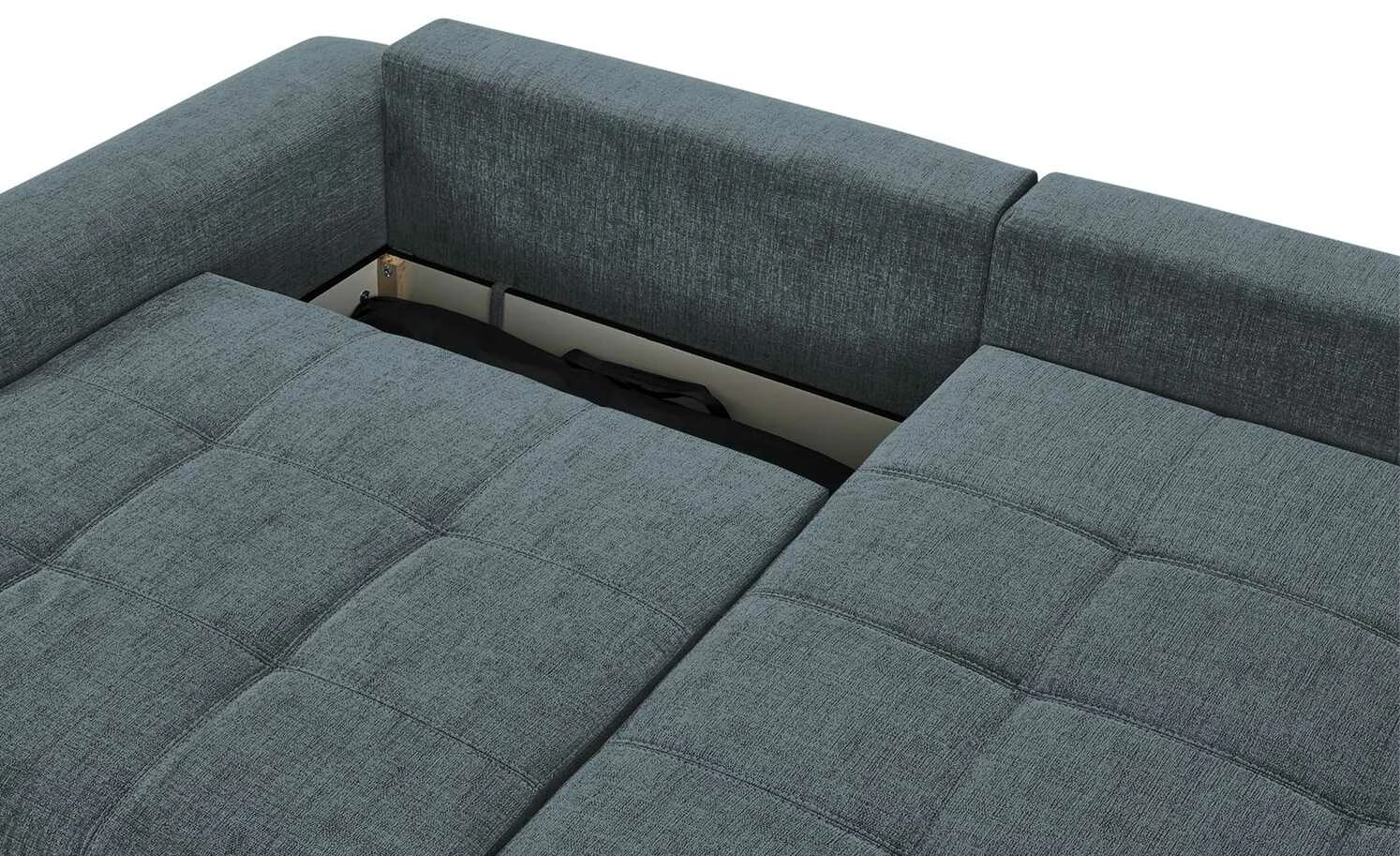 Das Ecksofa Filis de Luxe können Sie gut als Gästebett nutzen. Mit wenigen Handgriffen ist es zum Bett ausgezogen. Für mehr Liegekomfort ist ein weicher Topper im Lieferumfang enthalten. Darüber hinaus hat Filis de Luxe einen Federkern und eine Boxspringpolsterung. Sie können Sie sie auch mittig im Wohnzimmer platzieren. Mehrere weiche Kissen sind im Lieferumfang enthalten. Dazu gehören drei Rücken-, drei Nieren- und zwei Zierkissen. Alle acht greifen den Farbton des Bezuges auf.