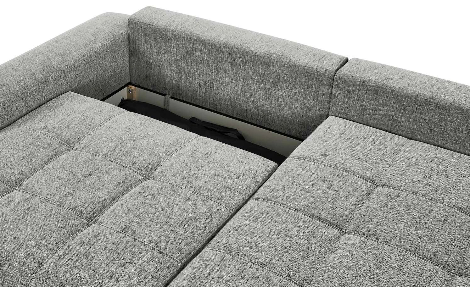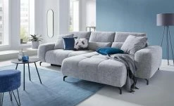 Das Ecksofa Filis de Luxe können Sie gut als Gästebett nutzen. Mit wenigen Handgriffen ist es zum Bett ausgezogen. Für mehr Liegekomfort ist ein weicher Topper im Lieferumfang enthalten. Darüber hinaus hat Filis de Luxe einen Federkern und eine Boxspringpolsterung. Sie können Sie sie auch mittig im Wohnzimmer platzieren. Mehrere weiche Kissen sind im Lieferumfang enthalten. Dazu gehören drei Rücken-, drei Nieren- und zwei Zierkissen. Alle acht greifen den Farbton des Bezuges auf.
