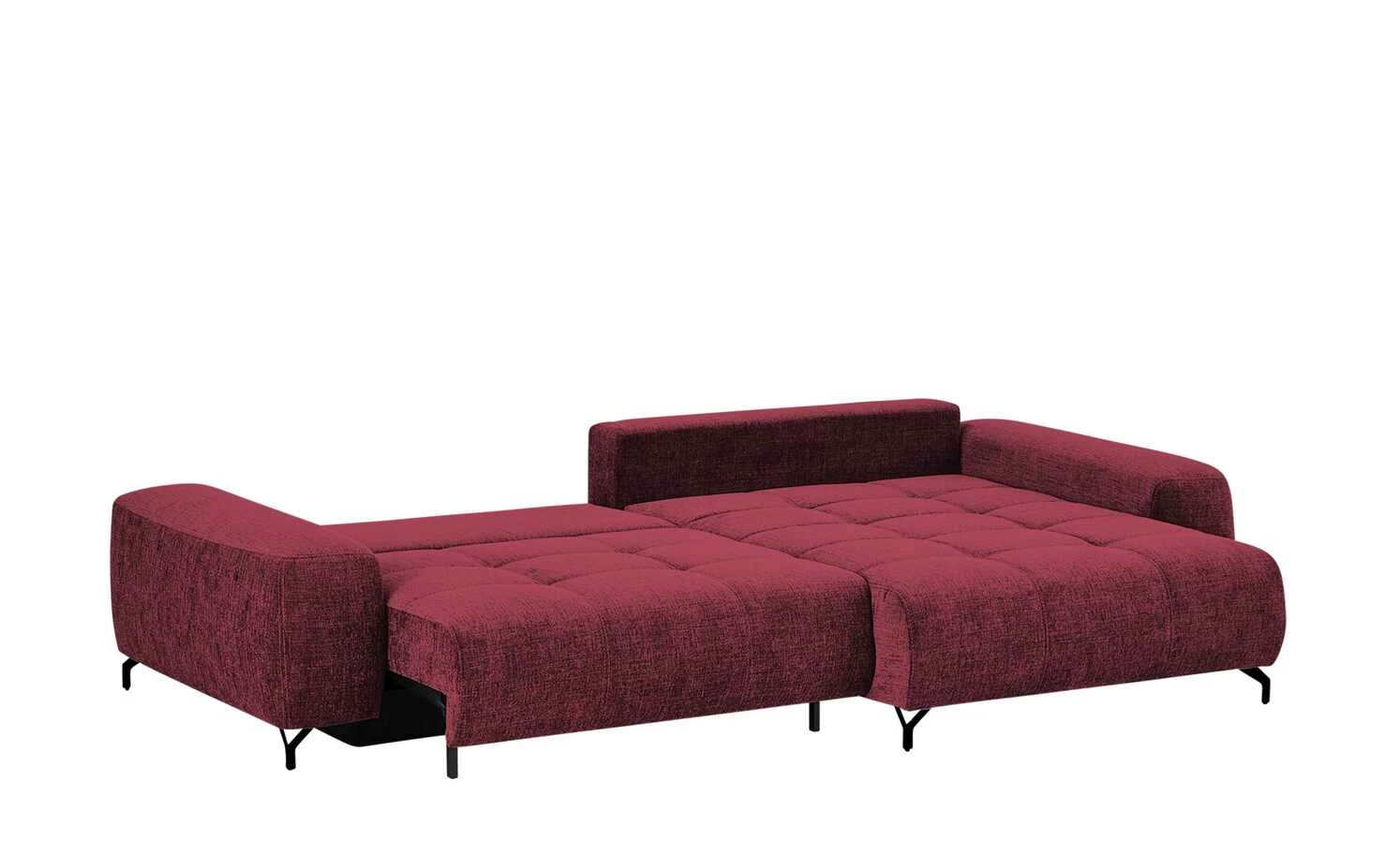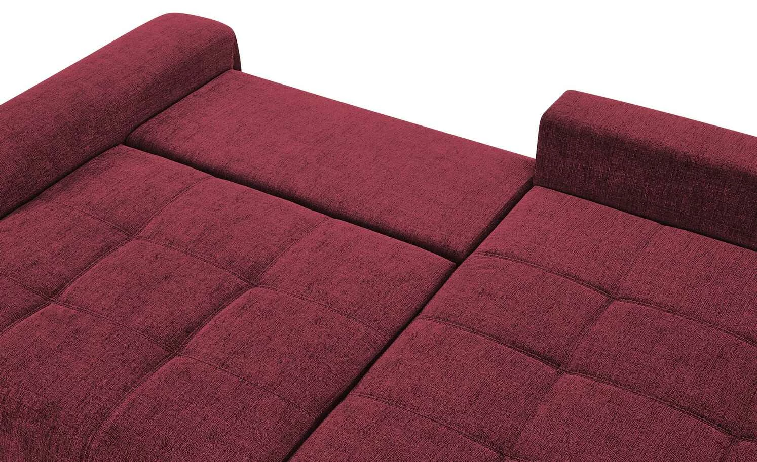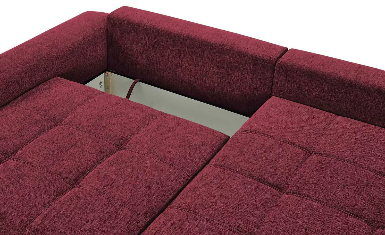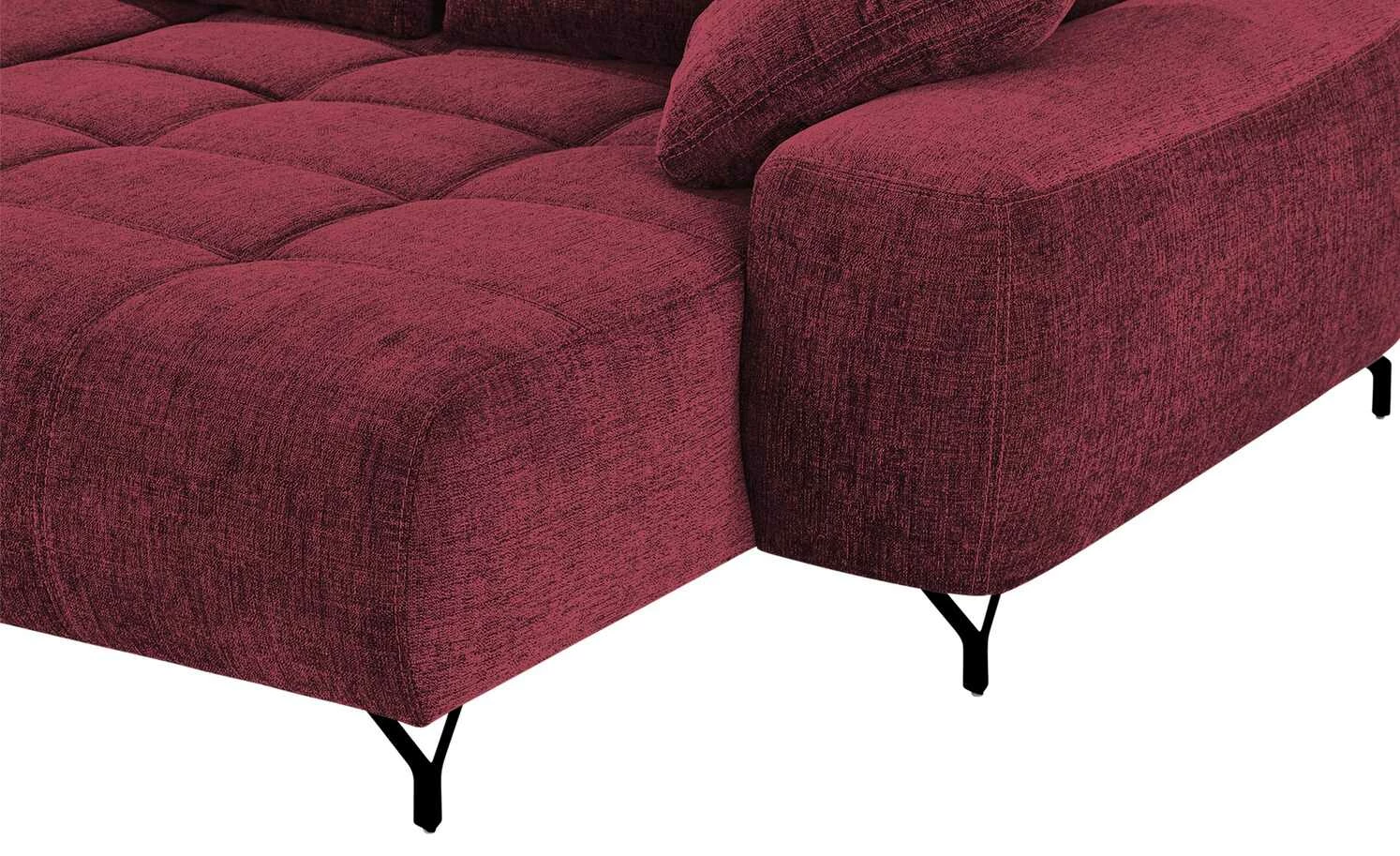 Das Ecksofa Filis de Luxe können Sie gut als Gästebett nutzen. Mit wenigen Handgriffen ist es zum Bett ausgezogen. Für mehr Liegekomfort ist ein weicher Topper im Lieferumfang enthalten. Darüber hinaus hat Filis de Luxe einen Federkern und eine Boxspringpolsterung. Sie können Sie sie auch mittig im Wohnzimmer platzieren. Mehrere weiche Kissen sind im Lieferumfang enthalten. Dazu gehören drei Rücken-, drei Nieren- und zwei Zierkissen. Alle acht greifen den Farbton des Bezuges auf.