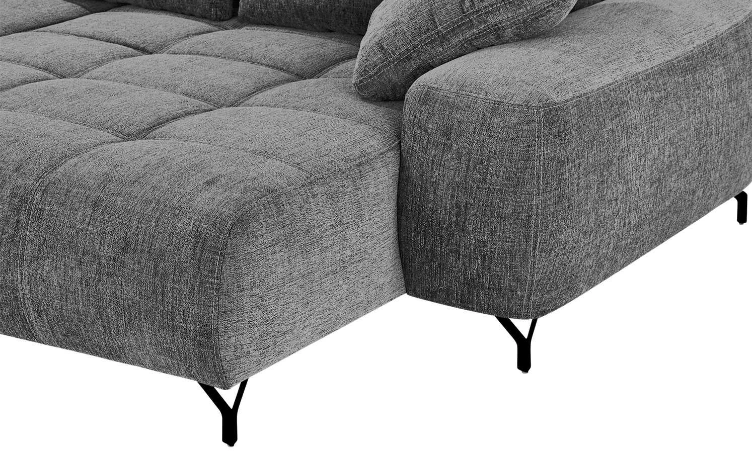Das Ecksofa Filis de Luxe können Sie gut als Gästebett nutzen. Mit wenigen Handgriffen ist es zum Bett ausgezogen. Für mehr Liegekomfort ist ein weicher Topper im Lieferumfang enthalten. Darüber hinaus hat Filis de Luxe einen Federkern und eine Boxspringpolsterung. Sie können Sie sie auch mittig im Wohnzimmer platzieren. Mehrere weiche Kissen sind im Lieferumfang enthalten. Dazu gehören drei Rücken-, drei Nieren- und zwei Zierkissen. Alle acht greifen den Farbton des Bezuges auf.