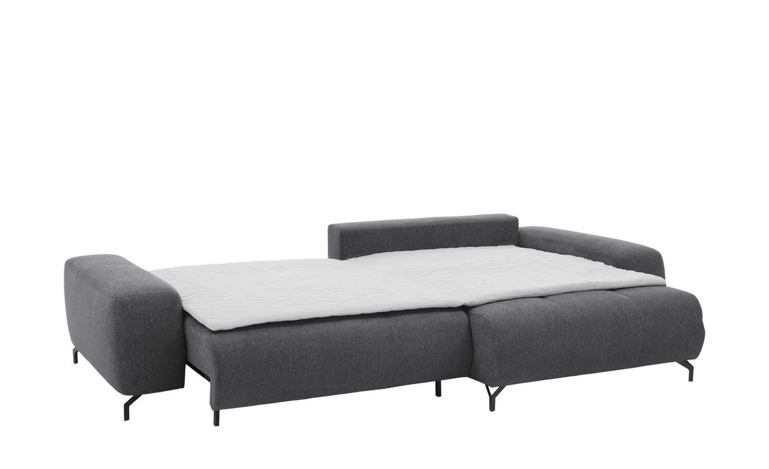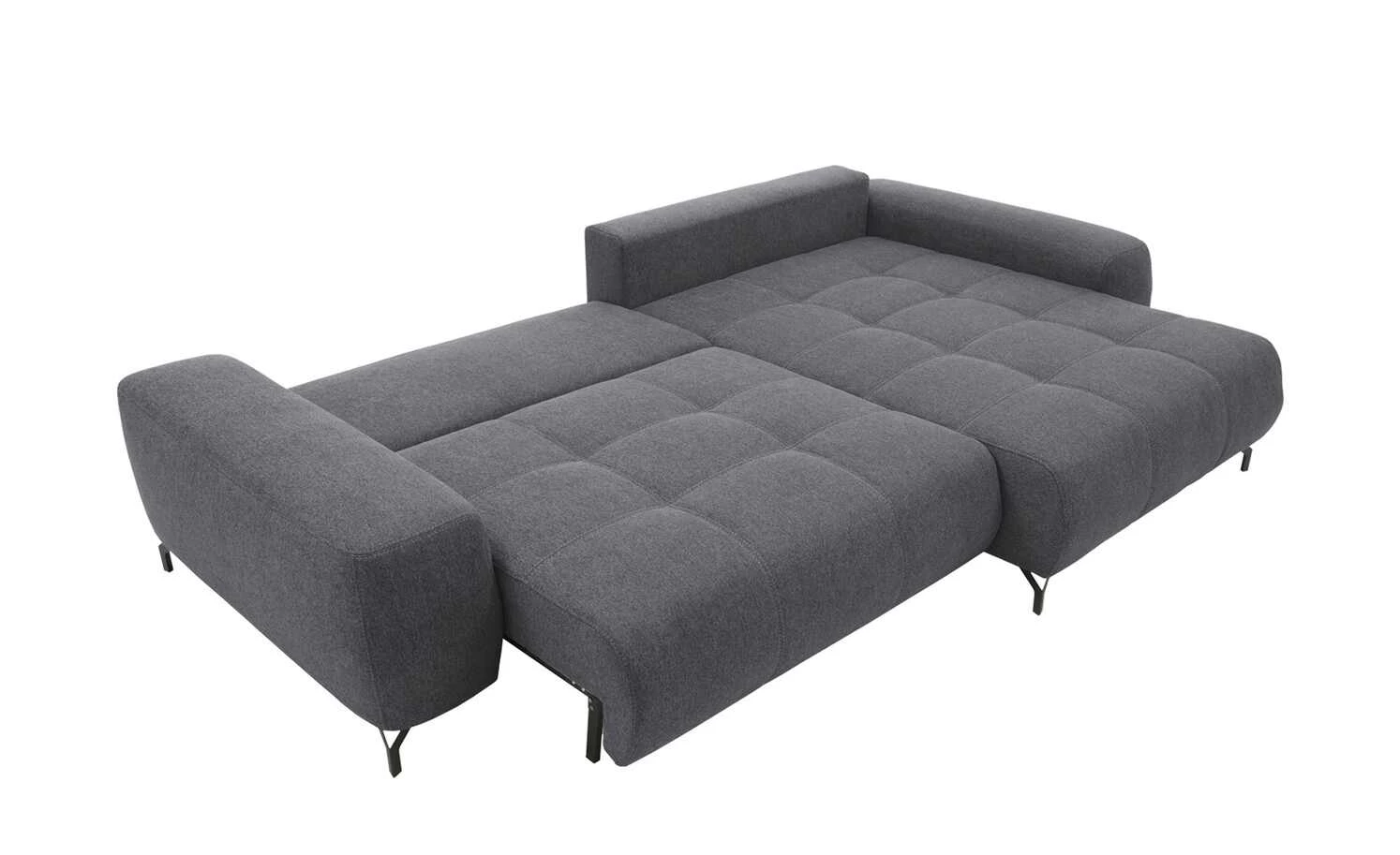 Das Ecksofa Filis de Luxe können Sie gut als Gästebett nutzen. Mit wenigen Handgriffen ist es zum Bett ausgezogen. Für mehr Liegekomfort ist ein weicher Topper im Lieferumfang enthalten. Darüber hinaus hat Filis de Luxe einen Federkern und eine Boxspringpolsterung. Sie können Sie sie auch mittig im Wohnzimmer platzieren. Mehrere weiche Kissen sind im Lieferumfang enthalten. Dazu gehören drei Rücken-, drei Nieren- und zwei Zierkissen. Alle acht greifen den Farbton des Bezuges auf.