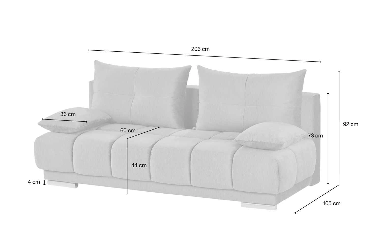 - Gesamtbreite: 206 cm