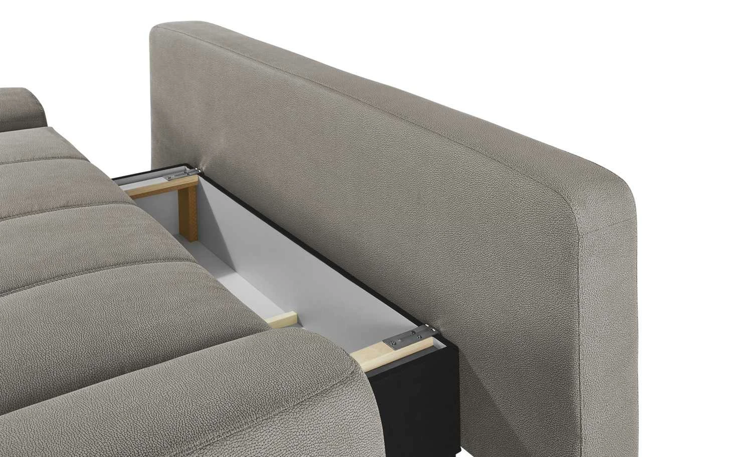 Ein weicher Mikrofaserbezug und eine hochwertige Boxspringpolsterung machen Eleny de Luxe besonders bequem. Die Leder-Optik sorgt für einen modernen Look. Das Sofa kann für Besuch ganz einfach ausgeklappt werden: Der mitgelieferte Topper bedeckt die gesamte Liegefläche. Unter der Sitzfläche befindet sich ein Bettkasten, in dem Sie zum Beispiel Gäste-Bettwäsche verstauen können.