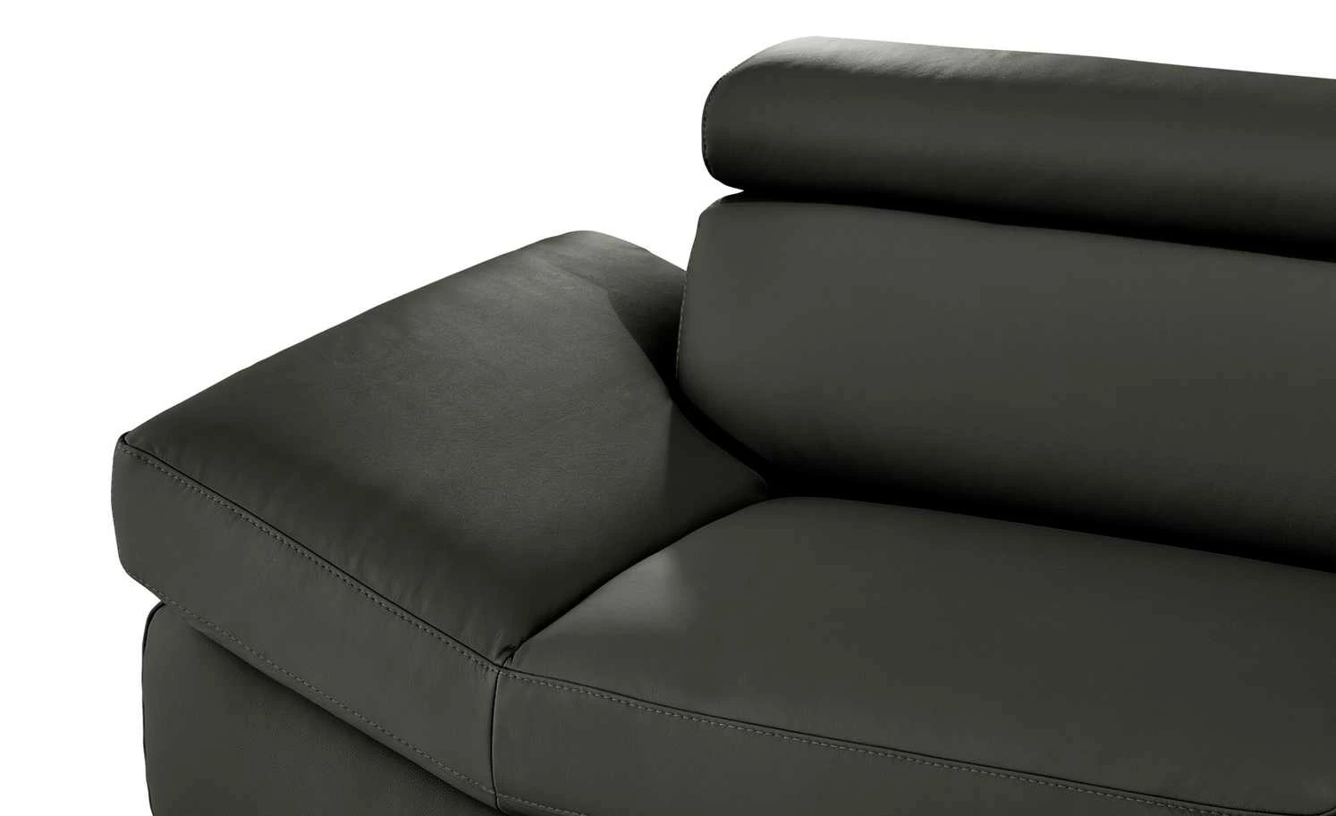 Das Ecksofa Camilla überzeugt mit erstklassiger Qualität, Optik und Komfort. Für letzteren sorgt die hochwertige Polsterung mit zusätzlicher Wellenunterfederung unterhalb der Sitze. Durch die angenehme Sitztiefe und die komfortabel geformte Rückenlehne können Sie es sich so richtig gemütlich machen. Alle fünf Kopfteile sind weich gepolstert und in der Position verstellbar. Dadurch haben Sie die Möglichkeit, den Kopf bei Bedarf anzulehnen. Camilla ist rundherum mit Echtleder bezogen. Es ist von anschmiegsamer, hochwertiger Qualität und hat eine schöne natürliche Narbung. Da auch die Rückseite damit bezogen ist, lässt sich das Sofa mittig im Wohnraum platzieren.