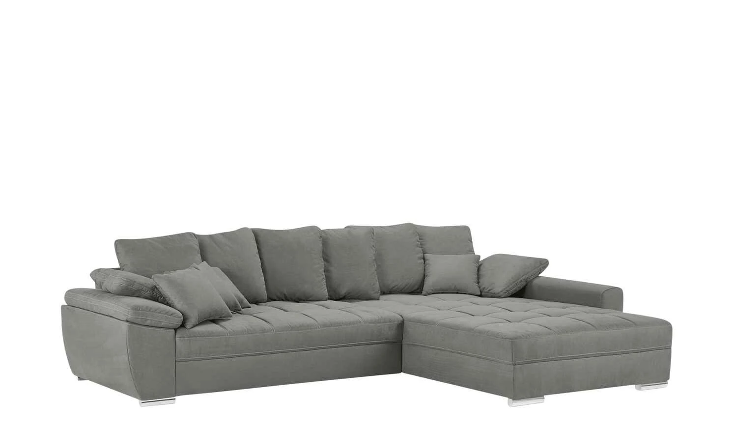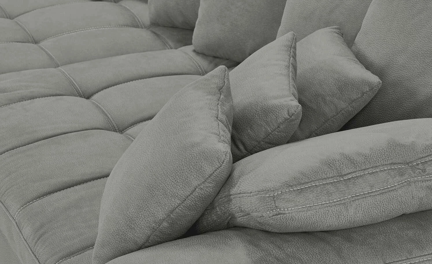 Ein gemütlicher Abend mit einem Herzensmenschen kann richtig entspannend sein. Das Ecksofa Farina ist die perfekte Grundlage dafür. Es ist bequem und hat mit 104 Zentimetern die ideale Sitztiefe um darauf zu relaxen. Die sechs Rückenkissen, zwei mittelgroßen und vier kleinen Kissen können Sie nach Herzenslust platzieren, um es sich noch behaglich-komfortabler zu machen. Sofa und Kissen sind mit softer Mikrofaser bezogen. Sie fühlt sich richtig angenehm an. Da Farina auch auf der Rückseite mit dem gleichen Stoff bezogen ist wie der Rest des Sofas, ergibt sich ein komplett einheitliches Design. Ein Eyecatcher ist die karoförmige Steppung im Sitzbereich.
