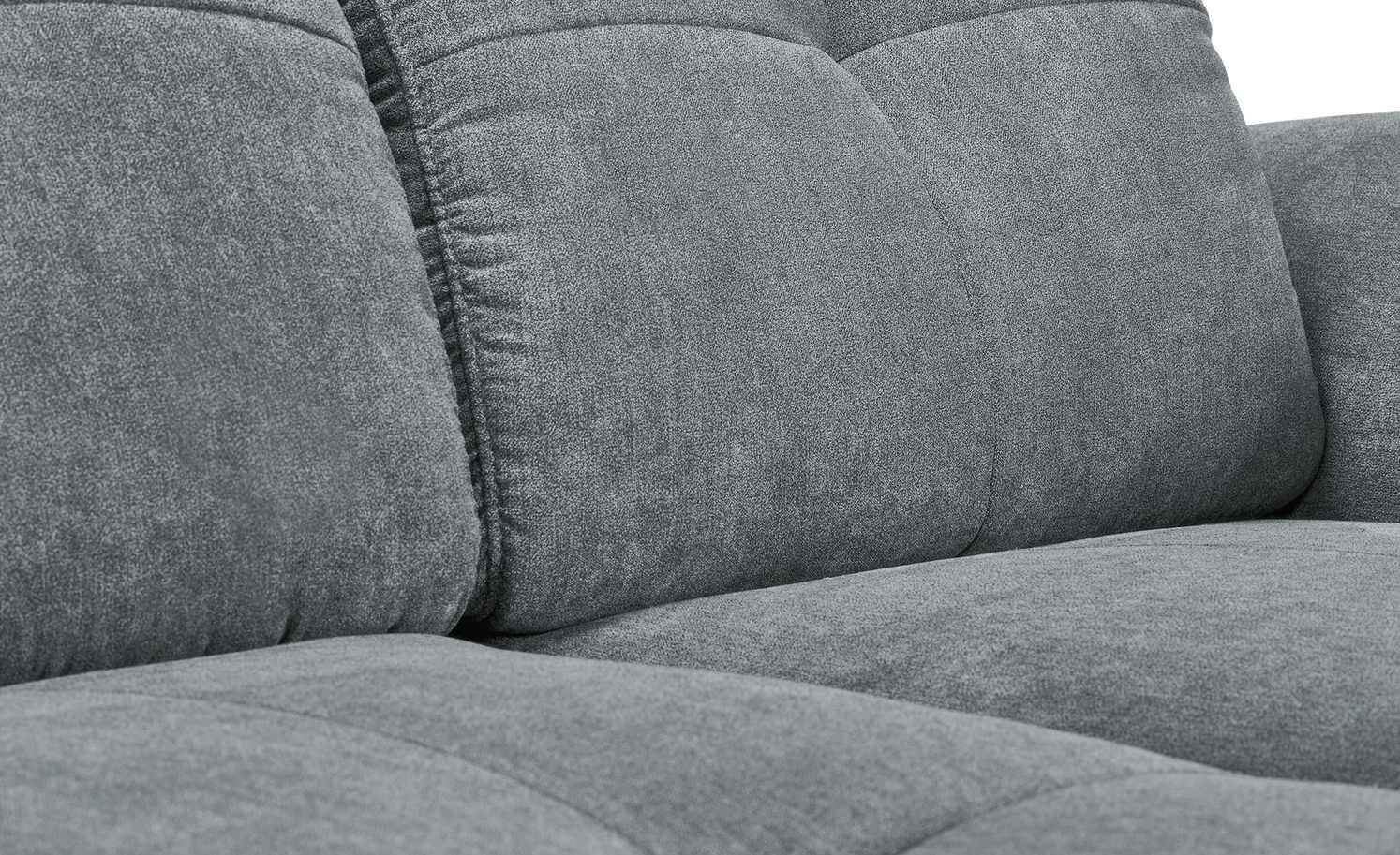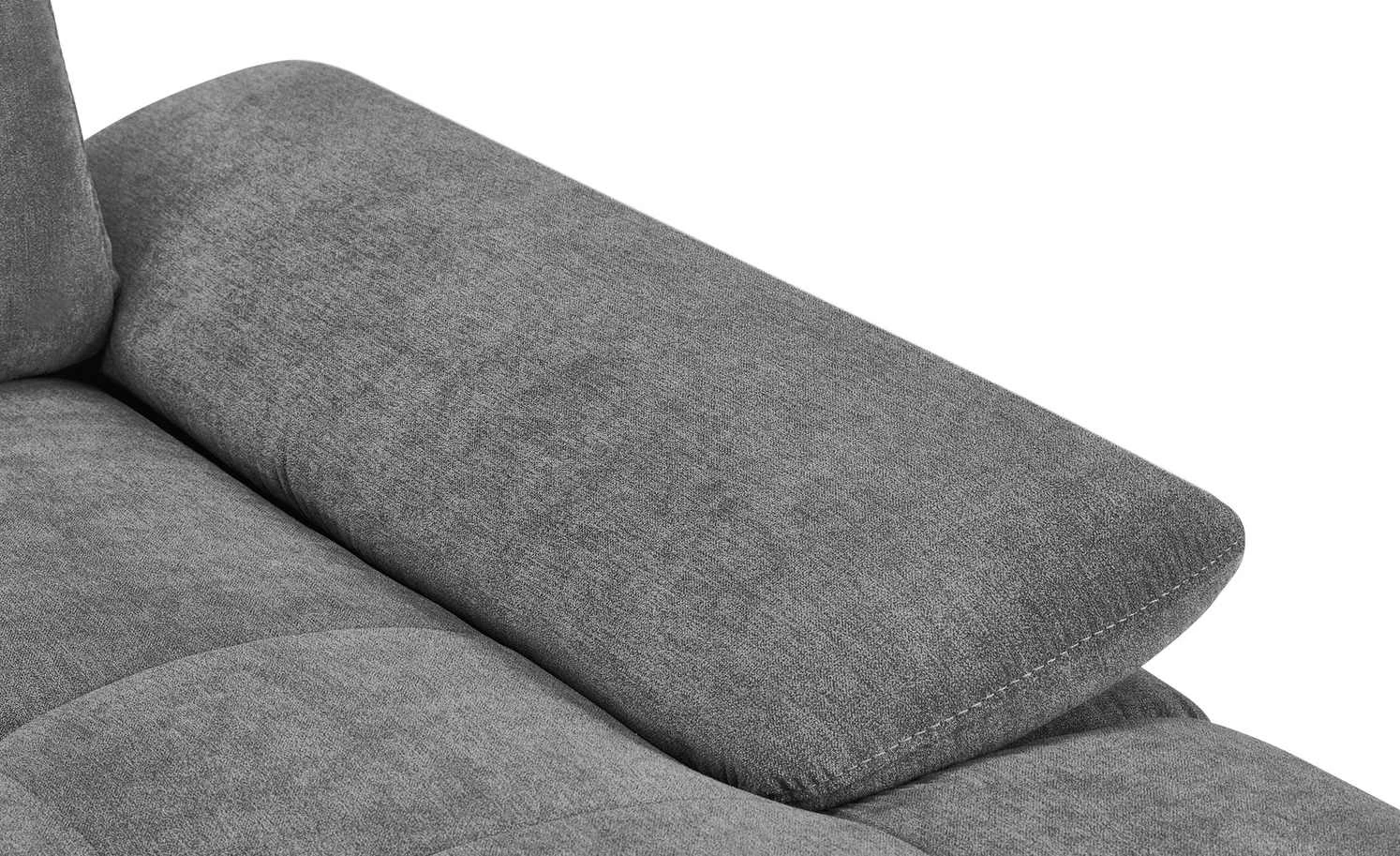 Auf dem Ecksofa Gladys können Sie es sich individuell bequem machen. Alle drei Sitze haben eine manuell verstellbare Sitztiefe. Sie ist zwischen 60 und 85 bzw. bei der Récamiere zwischen 136 und 160 cm variabel die drei Kopfteile und die beiden Armlehnen können Sie ebenfalls in der Position verstellen. Durch die Schlaffunktion kann Gladys auch zum Gästebett ausgezogen werden. In der Récamiere befindet sich ein praktischer Bettkasten in XL-Größe. Die Couch ist komfortabel gepolstert und im Sitzbereich zusätzlich mit einer Nosag-Wellenunterfederung ausgestattet. Ein Mikrofaserbezug umspannt das Sofa komplett, einschließlich der gesamten Rückseite.
