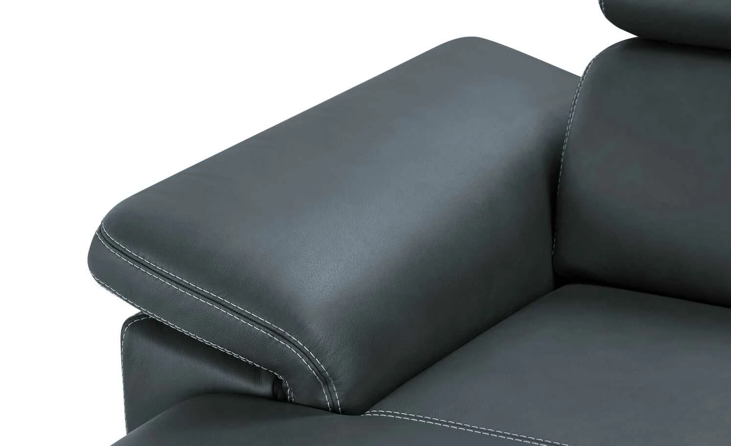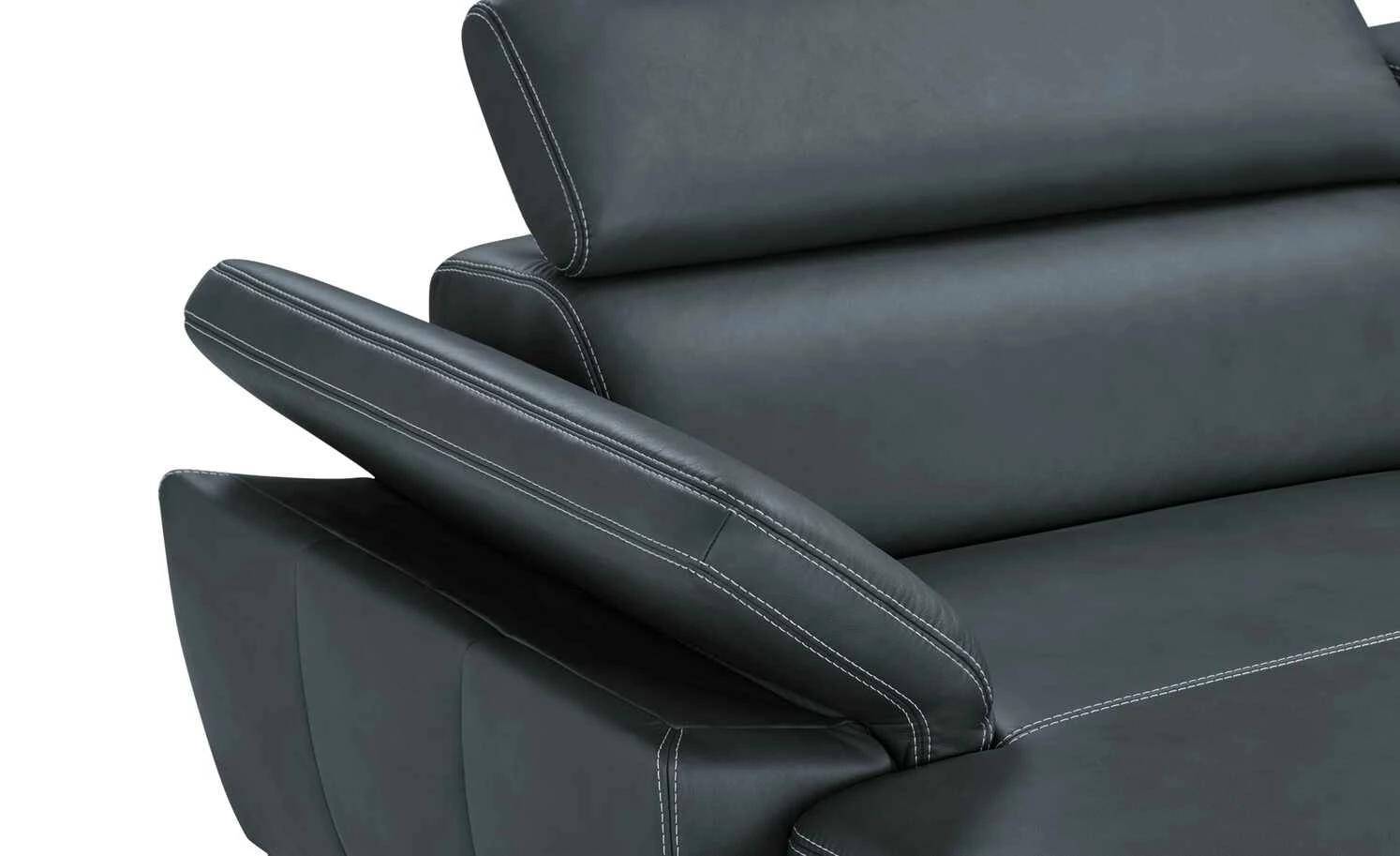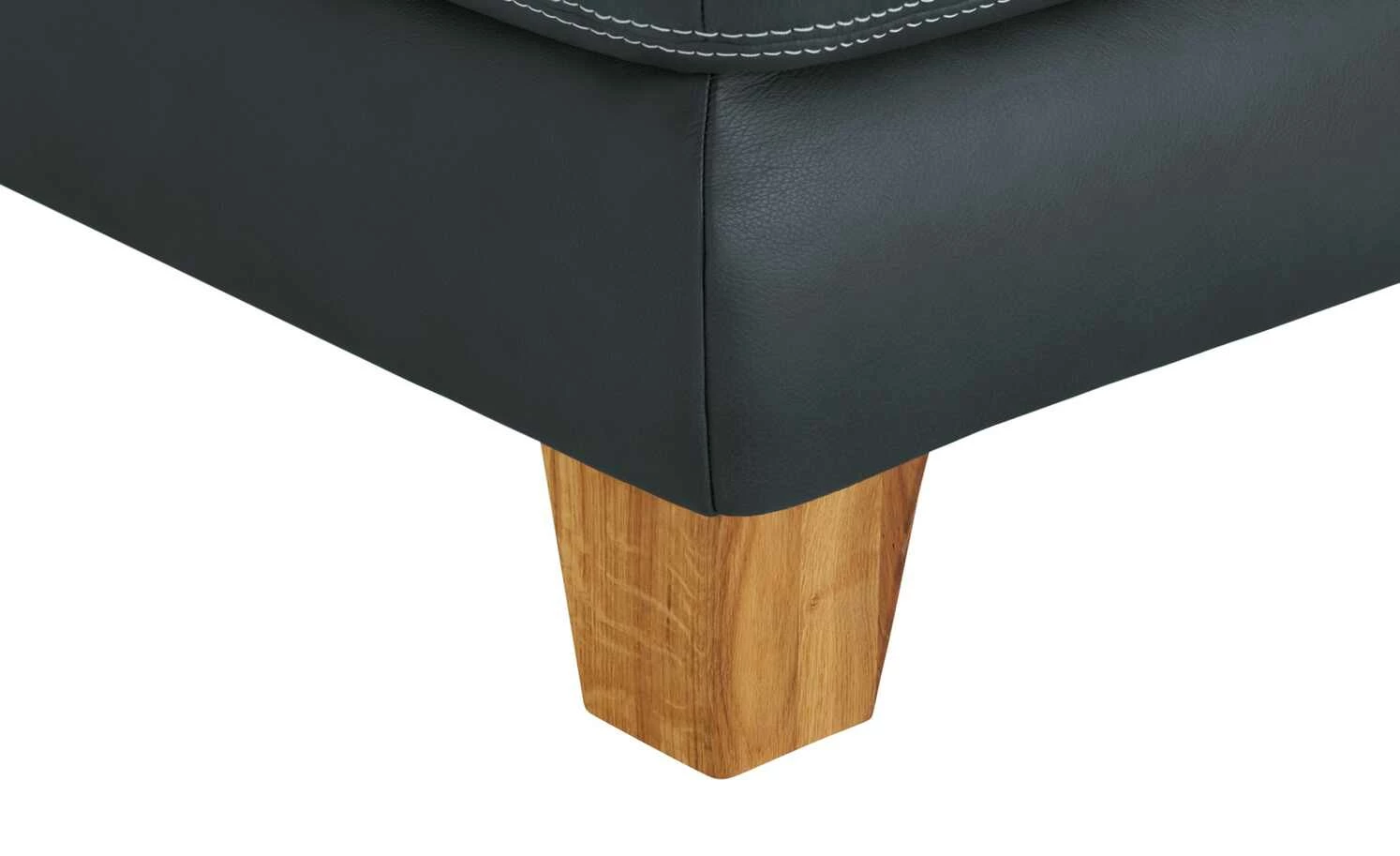 Modern und aus hochwertigem Echtleder: Das Ecksofa Indra. Der mattglänzende Lederbezug ist mit einer dekorativen weißen Kontrastnaht versehen und veredelt das Gesamterscheinungsbild. Massivholzfüße aus geölter Eiche runden den modernen Look gekonnt ab. Machen Sie es sich auf Ihrem neuen Sofa bequem und verstellen Sie ganz einfach die Kopfteile. Die hochwertige PUR-Schaum-Polsterung und die Wellenunterfederung sorgen für langanhaltenden Sitzkomfort. Das Ecksofa Indra ist auch auf der Rückseite mit dem Echtleder bezogen und kann daher frei im Raum platziert werden.