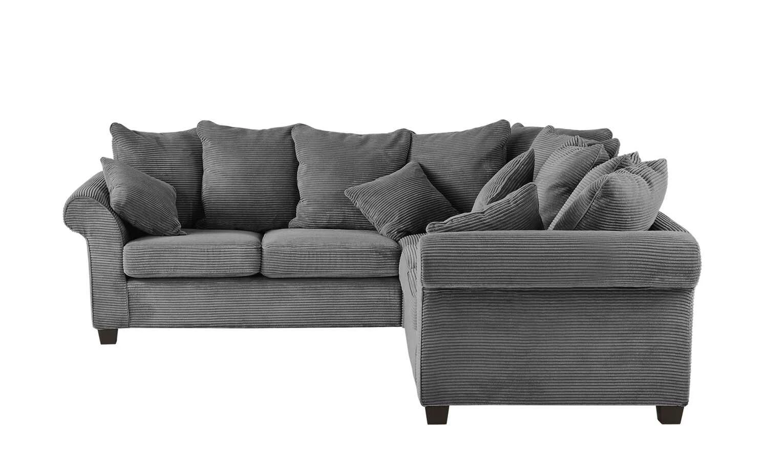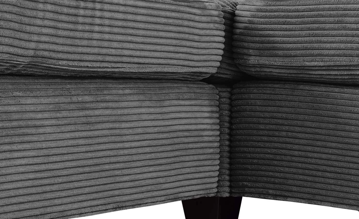Cord ist ein attraktiver Stoff, der gerne für Kleidung genutzt wird. Dass er auch gut zu einem Sofa passt, beweist das Ecksofa Norderney. Das gesamte Sofa ist mit Cord bezogen. Auch die Rückseite und alle mitgelieferten Kissen. Im Lieferumfang enthalten sind neun Rückenkissen und vier kleine Kissen. Sie können sie ganz nach Herzenslust auf das Sofa stellen. Und es sich so richtig gemütlich machen. Für das komfortable Sitzgefühl sorgt die Polsterung mit hochwertigem PUR Schaum. Unter dem Sitzbereich befindet sich zusätzlich eine Wellenunterfederung. Norderneyz ist hochwertig gearbeitet, damit Sie lange Freude an Ihrem neuen Sofa haben.