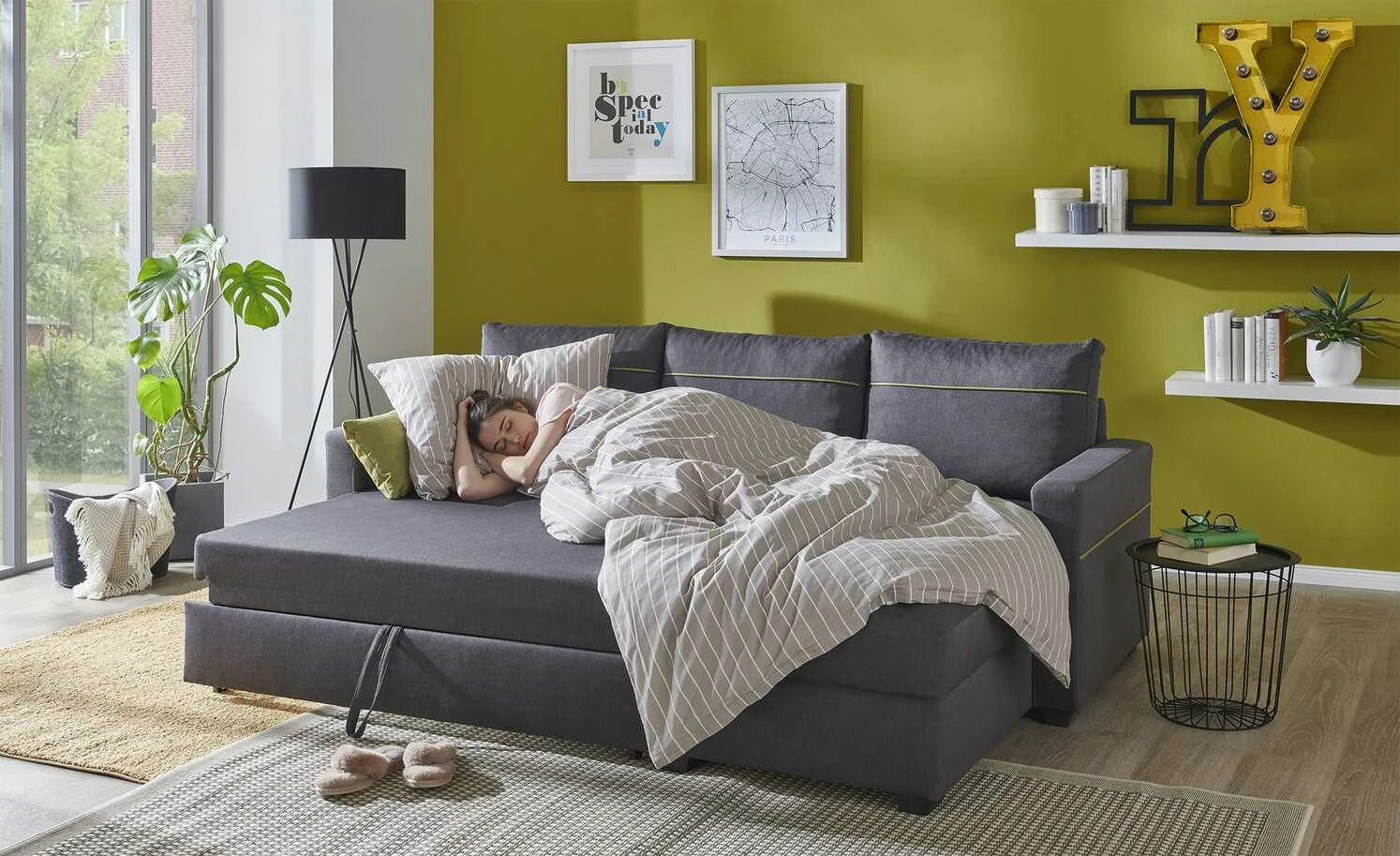 - Ausstattung / Funktion: Frei im Raum stellbar, Bettkasten, Schlaffunktion
