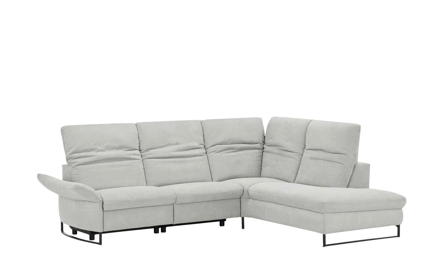 Das Ecksofa Viviana ist ein wahres Highlight und glänzt zudem mit einem äußerst hohen Gemütlichkeitsfaktor. Dank der Armteilverstellung wird das Sofa der Marke Gallery M zu einer absoluten Oase der Entspannung. Es lädt aufgrund der Wellenfederkerne sowie der Polsterung aus PUR-Schaum zum Entspannen ein. Ein Bezug aus Mikrofaser gibt der Sitz- und Rückenfläche herausragenden Sitzkomfort. Der Rücken des Sofas ist echt bezogen, sodass es auch mitten im Raum platziert werden kann. Das Modell Viviana steht fest auf hübschen schwarzen Füßen aus Metall. Das Sofa besitzt eine Ottomane auf der rechten Seite, hat eine Sitzhöhe von 47 cm und lädt mit der Sitztiefe von 57 cm zum Entspannen ein. Dieses Sofa gewährt Ihnen Raum zum Schmökern, Fernsehen und Die-Seele-baumeln-lassen.