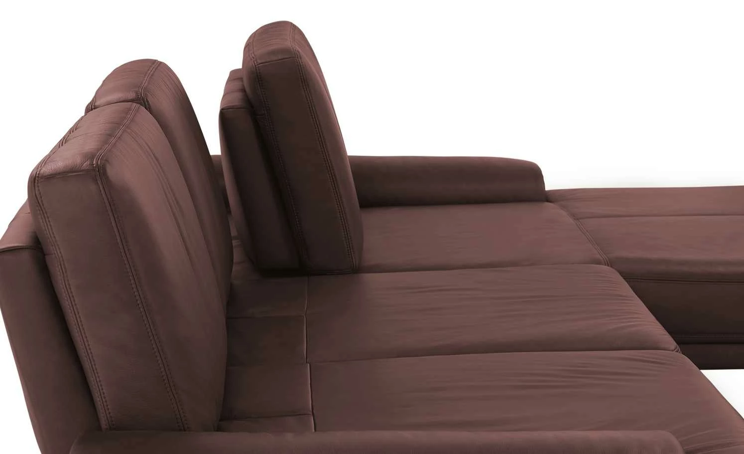 Klares Design gepaart mit moderner Eleganz: Das ist das Ecksofa Viola von Gallery M. Gradlinige Konturen und Formen bestimmen das Erscheinungsbild des Sofas und sorgen für ein attraktives Loft-Feeling. Mattschwarze Kufenfüße betonen den Stil gekonnt. Der hochwertige Echtlederbezug lässt die Struktur der Haut gut erkennen – ganz gleich, für welche Designfarbe Sie sich entscheiden. Die komfortabel gepolsterte Sitzfläche ist kariert gesteppt und mit sorgfältig verarbeiteten Nähten verziert. Die drei Rückenlehnen sind unabhängig voneinander zwischen 54 und 81 cm in der Sitztiefe verstellbar. Erleben Sie höchsten Komfort ohne Kompromisse im Design: Mit dem Ecksofa Viola von Gallery M entspannen Sie stilsicher.