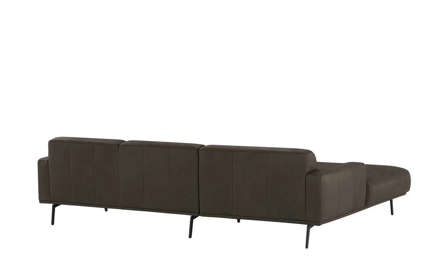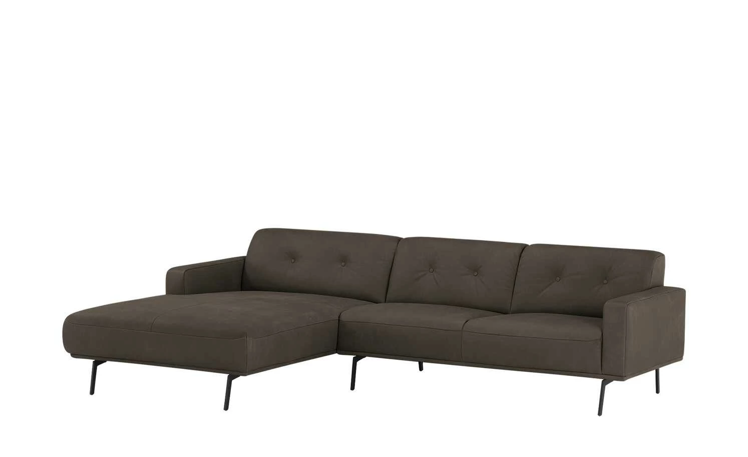 Bei dem Ecksofa Tierra Fuego One werden kultige Retro-Elemente mit dem heutigen Zeitgeist kombiniert. Das Ergebnis im Retro-Chic kann sich sehen lassen: Filigrane, schwarze Metallfüße und hochwertiges Echtleder mit attraktiven Akzenten. Dekorative Zierknöpfe im Rückenbereich werden zum Blickfang und verleihen dem Sofa einen edlen Touch. Elegant wird es durch die längs verlaufenden Nähte auf der Außenseite des Sofas. Armlehnen und Sofarückseite sind dadurch ebenfalls dekorativ. Sie können das Ecksofa daher problemlos als charakterstarkes Central-Piece mittig im Raum platzieren. Machen Sie es sich bequem und strecken Sie sich auf der breiten Ottomane aus. Das Ecksofa Tierra Fuego One lässt keine Wünsche an den Komfort offen.