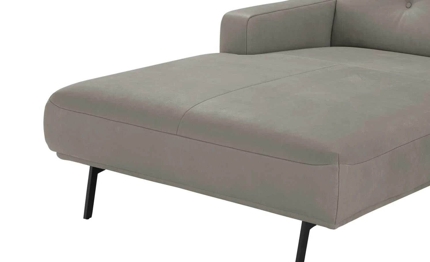 Bei dem Ecksofa Tierra Fuego One werden kultige Retro-Elemente mit dem heutigen Zeitgeist kombiniert. Das Ergebnis im Retro-Chic kann sich sehen lassen: Filigrane, schwarze Metallfüße und hochwertiges Echtleder mit attraktiven Akzenten. Dekorative Zierknöpfe im Rückenbereich werden zum Blickfang und verleihen dem Sofa einen edlen Touch. Elegant wird es durch die längs verlaufenden Nähte auf der Außenseite des Sofas. Armlehnen und Sofarückseite sind dadurch ebenfalls dekorativ. Sie können das Ecksofa daher problemlos als charakterstarkes Central-Piece mittig im Raum platzieren. Machen Sie es sich bequem und strecken Sie sich auf der breiten Ottomane aus. Das Ecksofa Tierra Fuego One lässt keine Wünsche an den Komfort offen.