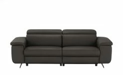 Klare Linien und Formen geben dem Ledersofa Black Coast Two ein modern-geometrisches Flair. Zwei breite Armlehnen flankieren die dicken Sitzpolster und betonen die einladende Gemütlichkeit. Der Bezug aus hochwertigem Echtleder ist mit dezenten Ziernähten versehen und umspannt das gesamte Sofa. Dessen beide Kopfteile lassen sich kinderleicht in mehreren Stufen verstellen: Und das separat voneinander. Die kubistischen Polsterbereiche bilden einen starken Kontrast zu den filigranen Schwertkufen, die das Sofa mühelos zu tragen scheinen. Entscheiden Sie sich für eine von fünf modernen Farben und erleben Sie das klar strukturierte Design hautnah. Durch seinen modernen Minimalismus zeigt sich das Ledersofa Black Coast Two kombinationsfreudig und mit zahlreichen Raumkonzepten kompatibel.