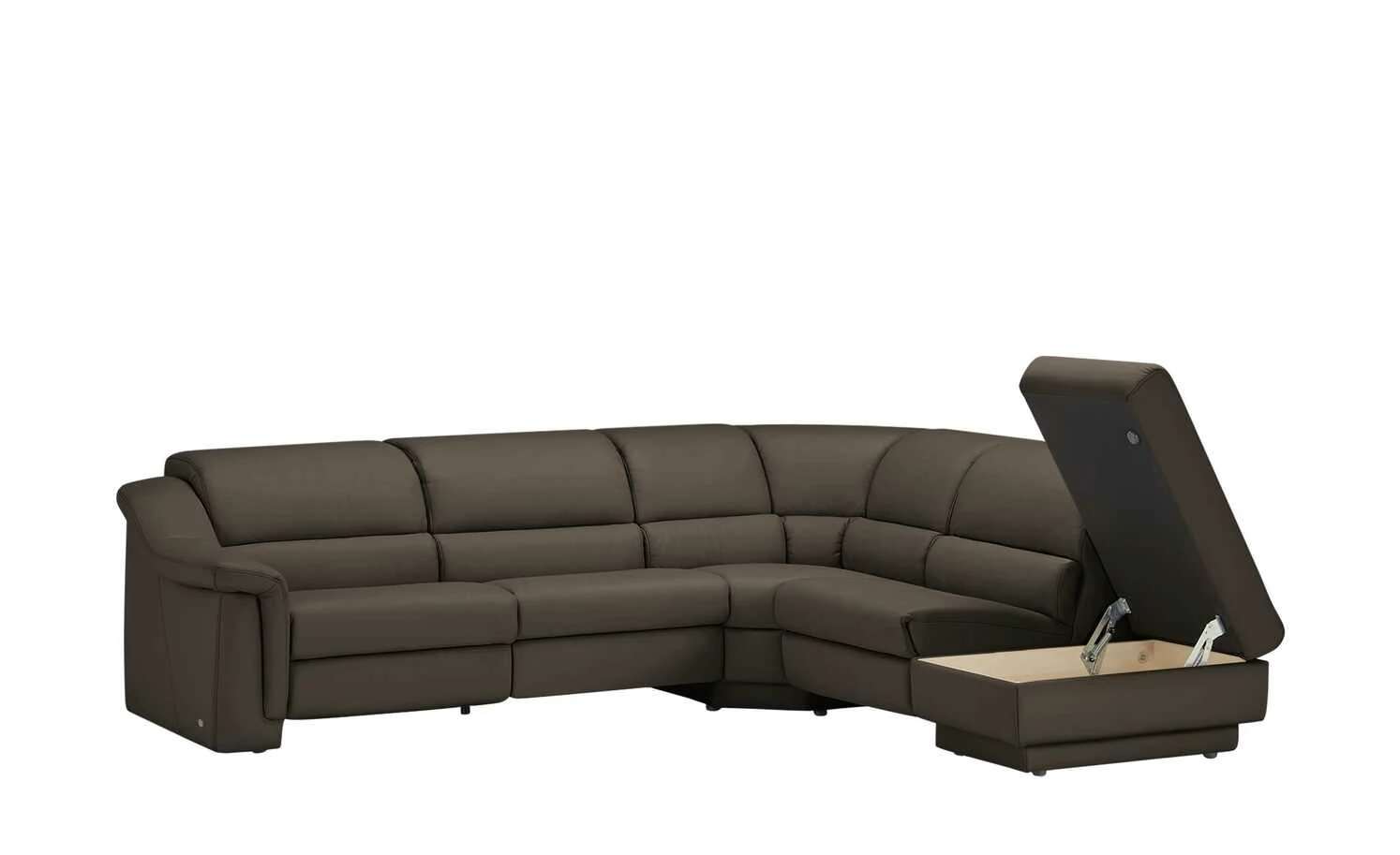 Bereichern Sie Ihr Zuhause mit dem besonders komfortablen Ecksofa 1301. Das dick gepolsterte Sofa ist komplett mit einem hochwertigen Bezug aus echtem Leder bezogen. Dieses ist äußerst bequem, robust und langlebig. Die Kopfteile lassen sich einzeln auf Wunsch verstellen – so wird das Ecksofa 1301 zu einem Platz, der sich ganz an Ihre Bedürfnisse anpasst. Zum besonderen Highlight wird das Ecksofa durch die elektrische Relaxfunktion, die Sie als Ausstattungsmerkmal wählen können. Per Knopfdruck lassen sich dann einzelne Sitz- und Rückenflächen in Richtung einer Liegeposition verstellen. So können Sie erstklassig entspannen. Übrigens: Tagesdecken können Sie wunderbar im integrierten Stauraum unterbringen. Polster gefertigt im bayrischen Taufkirchen: Von Menschen für Menschen. Die hochwertigen Funktionsmöbel der Marke himolla besitzen durchdachte Verstellfunktionen und begleiten Sie ein ganzes Möbelleben lang.