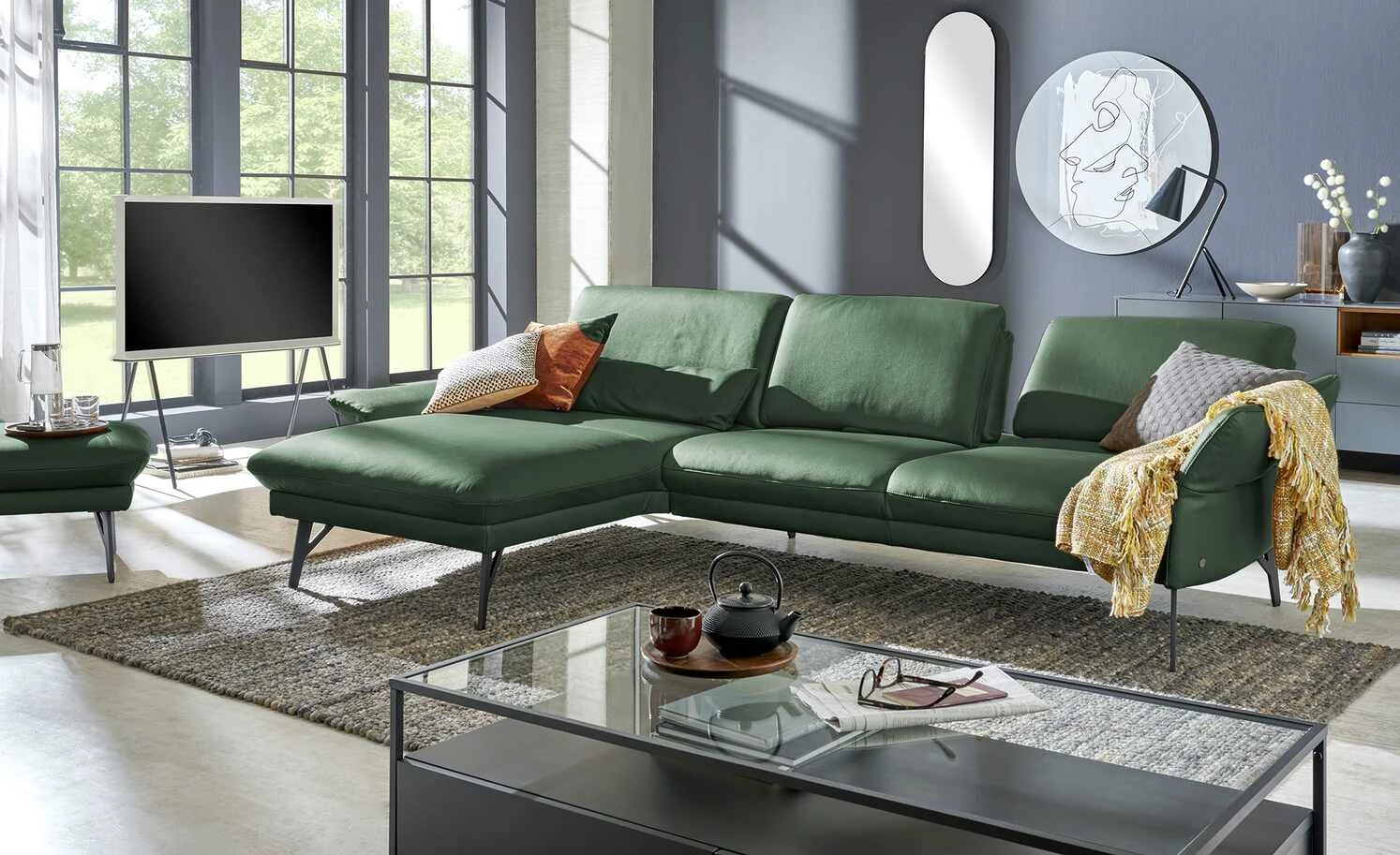 Dieses Sofa verbindet hochwertiges Echtleder und anthrazitfarbenes Metall zu einem loftig-modernen Design. Durch seine Kombination aus Polster in Markenqualität und zeitgemäßen Funktionen entsteht eine wahre Komfort-Oase, die sich sehen lassen kann. Verstellen Sie die Armlehnen mit nur einem Handgriff und passen Sie die Sitztiefe ganz Ihren Wünschen an. Strecken Sie sich auf der Ottomane aus und genießen Sie Zeit mit Freunden und Familie. Übrigens: Mit der passenden Kopfstütze und dem Hocker der Serie 1928 lässt sich das Ecksofa individuell Ihren Bedürfnissen anpassen. Polster gefertigt im bayrischen Taufkirchen: Von Menschen für Menschen. Die hochwertigen Funktionsmöbel der Marke himolla besitzen durchdachte Verstellfunktionen und begleiten Sie ein ganzes Möbelleben lang.