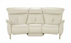 Lassen Sie den Tag ausklingen und genießen Sie entspannte Stunden vor dem Fernseher. Dieses komfortable Ledersofa kombiniert dicke Polsterbereiche mit einer integrierten Relaxfunktion. Die beiden äußeren Sitze lassen sich kinderleicht in Relaxposition stellen: Unabhängig voneinander. Klappen Sie das Mittelteil ganz einfach um, wenn Sie einen praktischen Beistelltisch benötigen. Hier finden Getränke, Snacks und die Fernbedienung problemlos Platz. Ein edler Echtlederbezug mit dekorativen Nähten umspannt das gesamte Sofa. Absteppungen betonen die dicken Polsterbereiche und geben dem Markensofa eine moderne Note. Bewusst gesetzte Akzente aus Wildeichen-Massivholz verleihen dem Ledersofa außerdem einen natürlichen Touch.