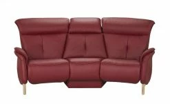 Lassen Sie den Tag ausklingen und genießen Sie entspannte Stunden vor dem Fernseher. Dieses komfortable Ledersofa kombiniert dicke Polsterbereiche mit einer integrierten Relaxfunktion. Die beiden äußeren Sitze lassen sich kinderleicht in Relaxposition stellen: Unabhängig voneinander. Klappen Sie das Mittelteil ganz einfach um, wenn Sie einen praktischen Beistelltisch benötigen. Hier finden Getränke, Snacks und die Fernbedienung problemlos Platz. Ein edler Echtlederbezug mit dekorativen Nähten umspannt das gesamte Sofa. Absteppungen betonen die dicken Polsterbereiche und geben dem Markensofa eine moderne Note. Bewusst gesetzte Akzente aus Wildeichen-Massivholz verleihen dem Ledersofa außerdem einen natürlichen Touch.