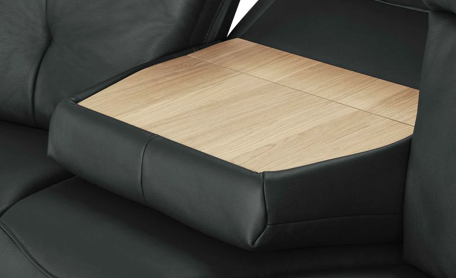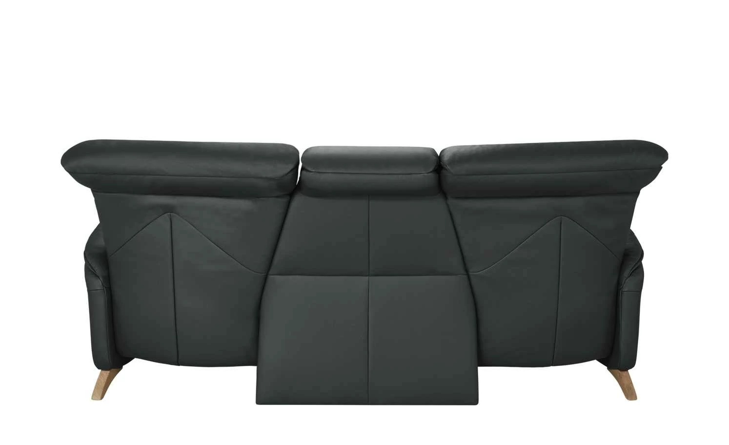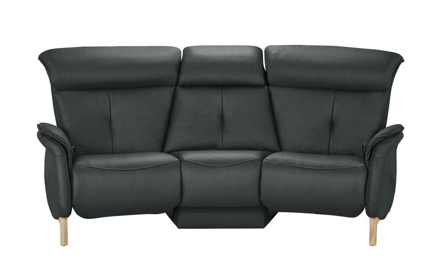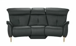 Lassen Sie den Tag ausklingen und genießen Sie entspannte Stunden vor dem Fernseher. Dieses komfortable Ledersofa kombiniert dicke Polsterbereiche mit einer integrierten Relaxfunktion. Die beiden äußeren Sitze lassen sich kinderleicht in Relaxposition stellen: Unabhängig voneinander. Klappen Sie das Mittelteil ganz einfach um, wenn Sie einen praktischen Beistelltisch benötigen. Hier finden Getränke, Snacks und die Fernbedienung problemlos Platz. Ein edler Echtlederbezug mit dekorativen Nähten umspannt das gesamte Sofa. Absteppungen betonen die dicken Polsterbereiche und geben dem Markensofa eine moderne Note. Bewusst gesetzte Akzente aus Wildeichen-Massivholz verleihen dem Ledersofa außerdem einen natürlichen Touch.