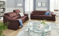 Einladend und komfortabel zeigt sich dieses Ledersofa. Der hochwertige Echtlederbezug ist dekorativ abgesteppt und betont die einzelnen, extra dicken Polsterbereiche gekonnt. Verstellen Sie die Kopfteile separat voneinander und lehnen Sie sich zurück. Das Ledersofa lässt sich zu zahlreichen Einrichtungsstilen kombinieren und lädt zum Entspannen ein.