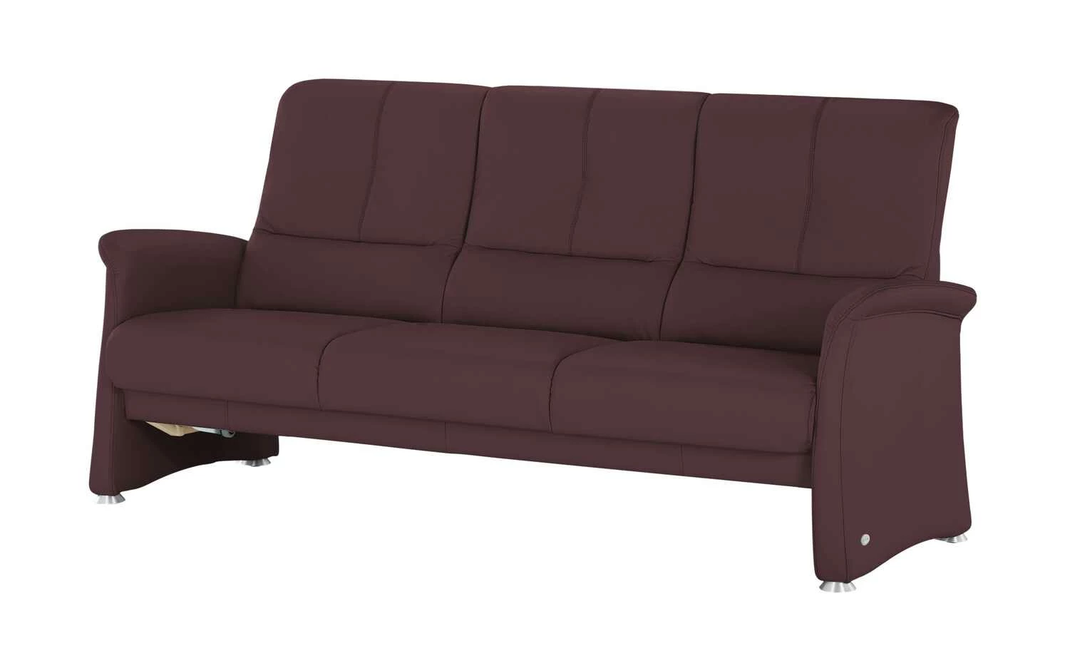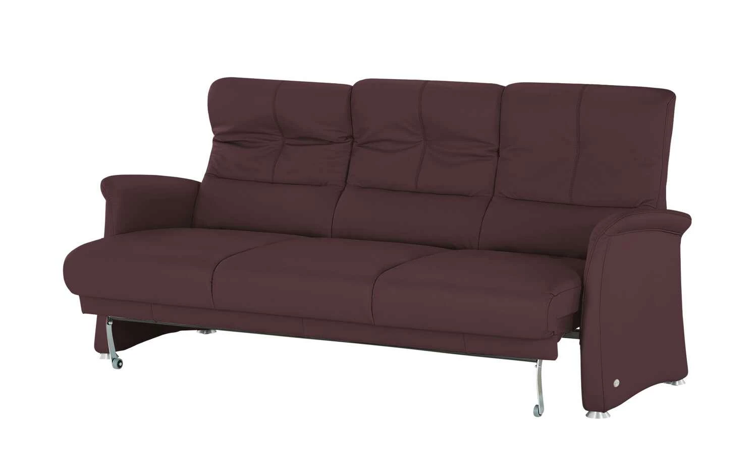 Hochwertiges Echtleder umspannt die komfortablen Polster dieses Sofas. Dekorative Ziernähte steppen die einzelnen Bereiche gekonnt ab und geben dem Sofa liebevolle Details. Nehmen Sie auf diesem Dreisitzer Platz und lehnen Sie sich zurück. Dank der praktischen Vorziehfunktion lässt sich die Sitztiefe von 53 auf 70 Zentimeter erweitern – perfekt zum legeren Entspannen.