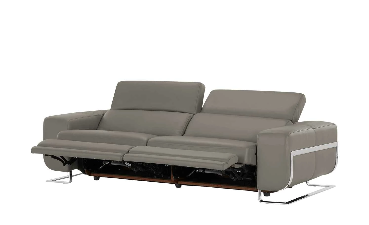 Das Ledersofa sorgt für ein hohes Maß an Bequemlichkeit in jedem Zuhause. Aufgrund der Kopfteilverstellung ist das Sofa extrem gemütlich. Komfort und Qualität vereinen sich in diesem Sofa der Marke JOOP gekonnt. Das Sofa lädt aufgrund der Wellenfederkerne sowie der Polsterung aus Kaltschaum zum Wohlfühlen ein. Auf der mit Leder bezogenen Sitz- und Rückenfläche sitzen Sie äußerst gemütlich. Das Sofa verfügt über einen echt bezogenen Rücken, sodass es ohne Probleme mitten im Raum aufgestellt werden kann. Die chromfarbenen Füße aus Metall ergänzen das Sofa stilsicher. Das Sofa wird dank der Sitztiefe von 57 cm zu einer wahren Oase der Entspannung, nimmt insgesamt 74 × 238 cm ein und hat eine Sitzhöhe von 46 cm. Das Sofa verspricht behagliches Wohnen mit Stil und Ruhe.