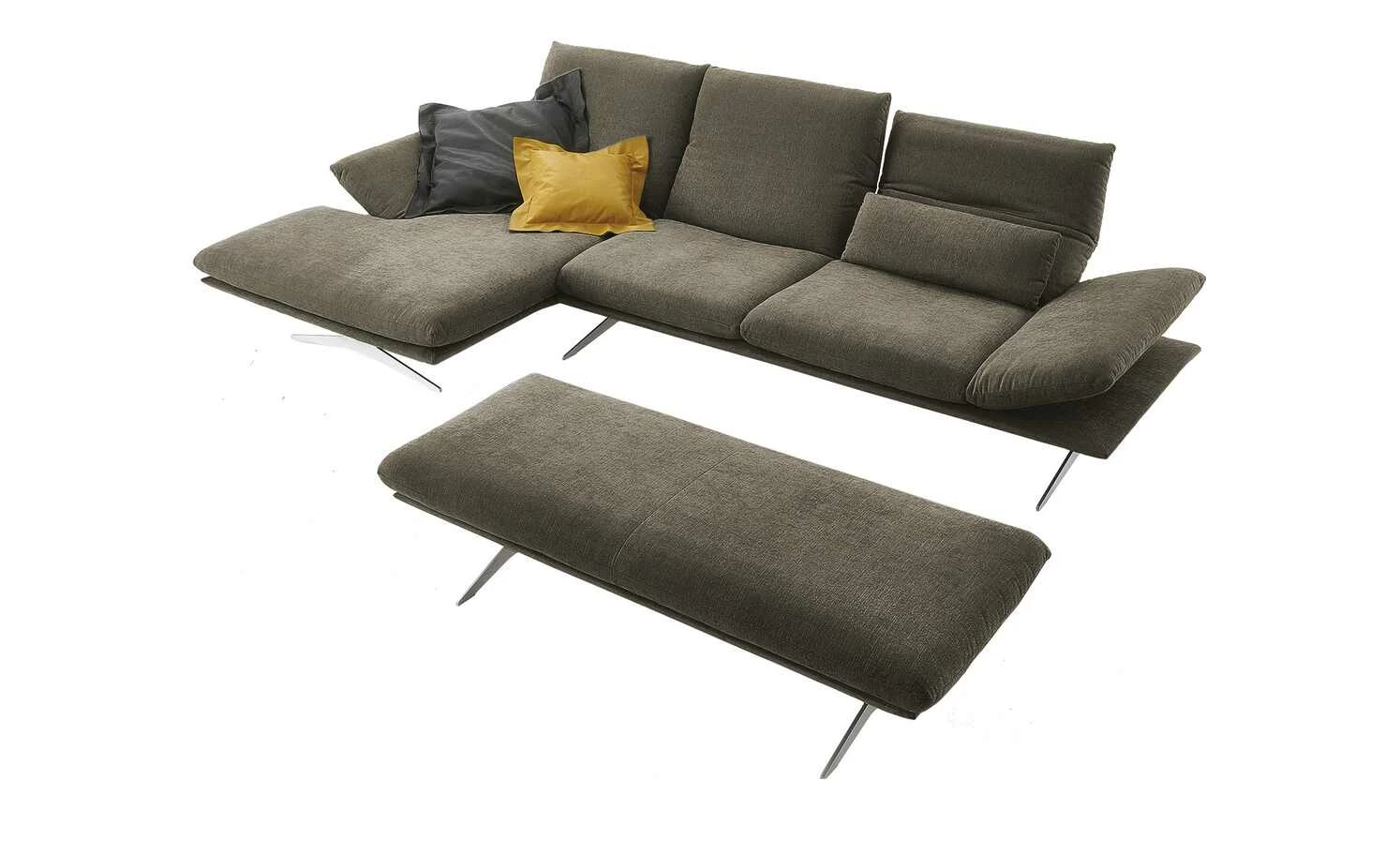Schwerelose Leichtigkeit, zeitloses Design und höchster Komfort: Francis vereint alle essenziellen Aspekte eines modernen Sofas. Ein melierter Bezug umspannt die Polster und das serientypische Plateau. Zierliche Metallkufen aus satiniertem Nickel tragen das Plateau und verleihen dem Ecksofa Francis ein einzigartiges Gefühl von schwereloser Leichtigkeit. Verstellen Sie die Rückenlehnen und klappen Sie die Armlehnen ganz einfach um. Um die Optik nicht zu stören, sind in KOINOR-Markenmöbeln alle Hebel dezent integriert. Kombinieren Sie das Ecksofa mit der gleichnamigen Hockerbank und erschaffen Sie sich Ihre ganz individuelle Wohlfühl-Oase.
