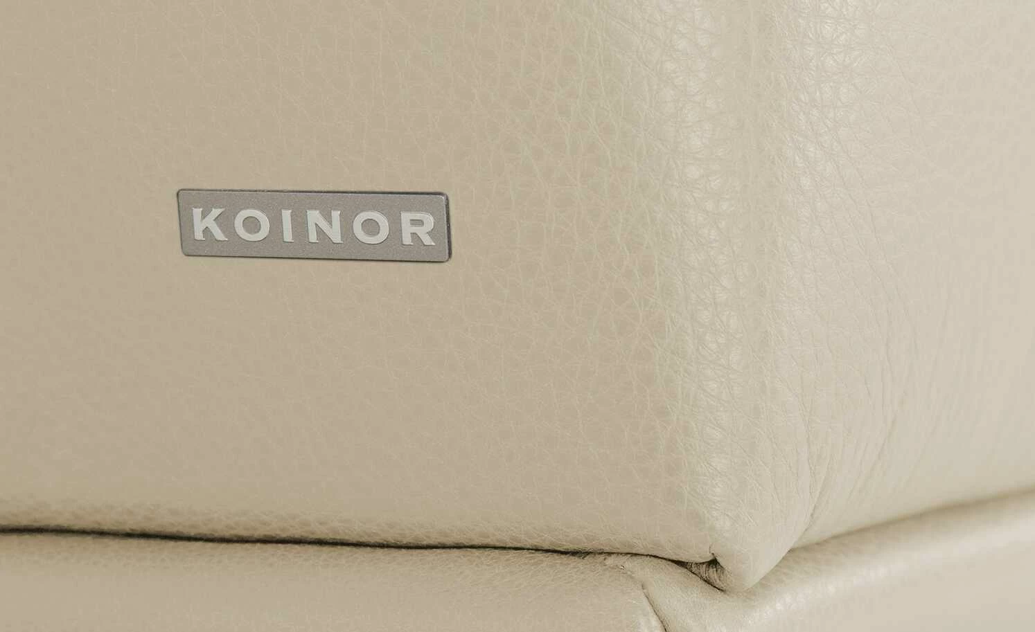 Das Ecksofa Hiero verbindet kubistische Design-Elemente mit einer modernen, klaren Linienführung. Akzentuiert wird dieser Designentwurf mit attraktiven Kontrasten in Material und Farbe. Nehmen Sie Platz und strecken Sie sich auf der extra breiten Ottomane bequem aus. Passen Sie die drei Rückenlehnen ganz Ihren Bedürfnissen an: Sie lassen sich mühelos und separat voneinander neigen. Die beiden breiten Armlehnen flankieren die Sitzfläche gekonnt und lenken den Fokus auf die einladende Sitzfläche. Der hochwertige Echtlederbezug umspannt das gesamte Sofa und setzt mit seiner Kontrastnaht liebevolle Akzente. Filigrane Schwertkufen aus poliertem Metall tragen das Ecksofa und scheinen es nahezu schweben zu lassen. Unikate gefertigt in Bayern: Die Marke KOINOR steht für einzigartige Komfortfunktionen und individuelles Design. Unter Verwendung hochwertigster Materialien entstehen Möbel mit Vorzeigecharakter.