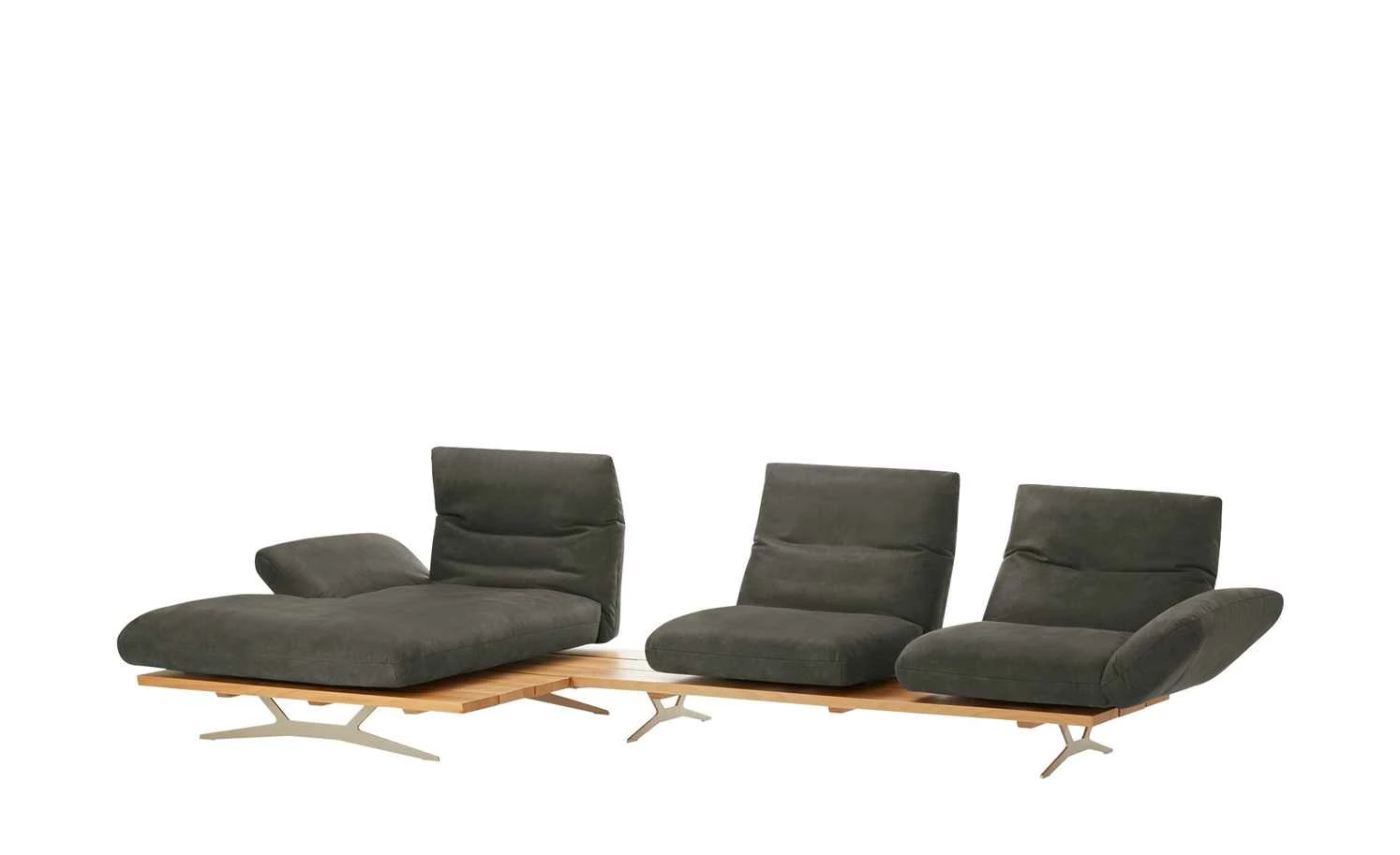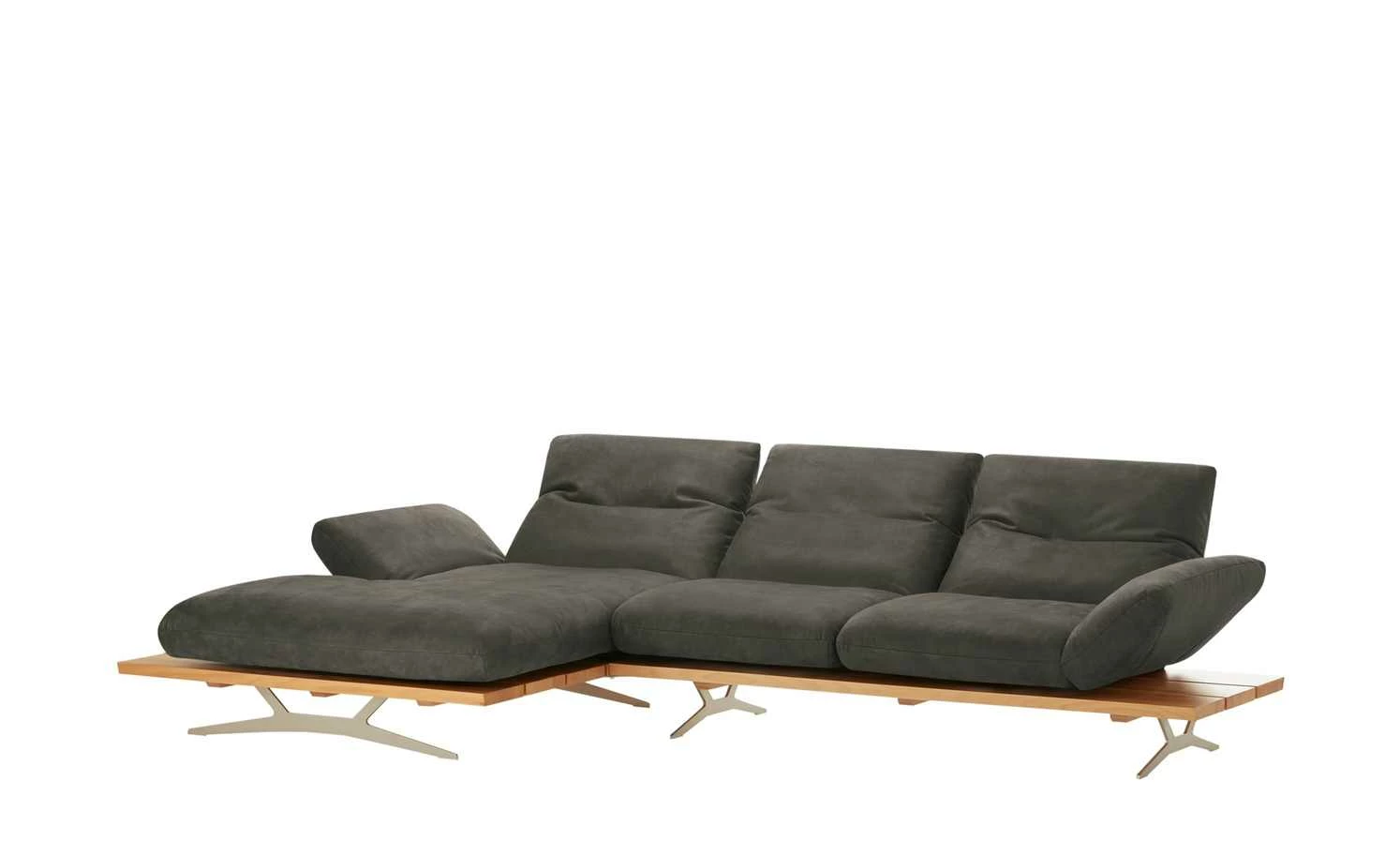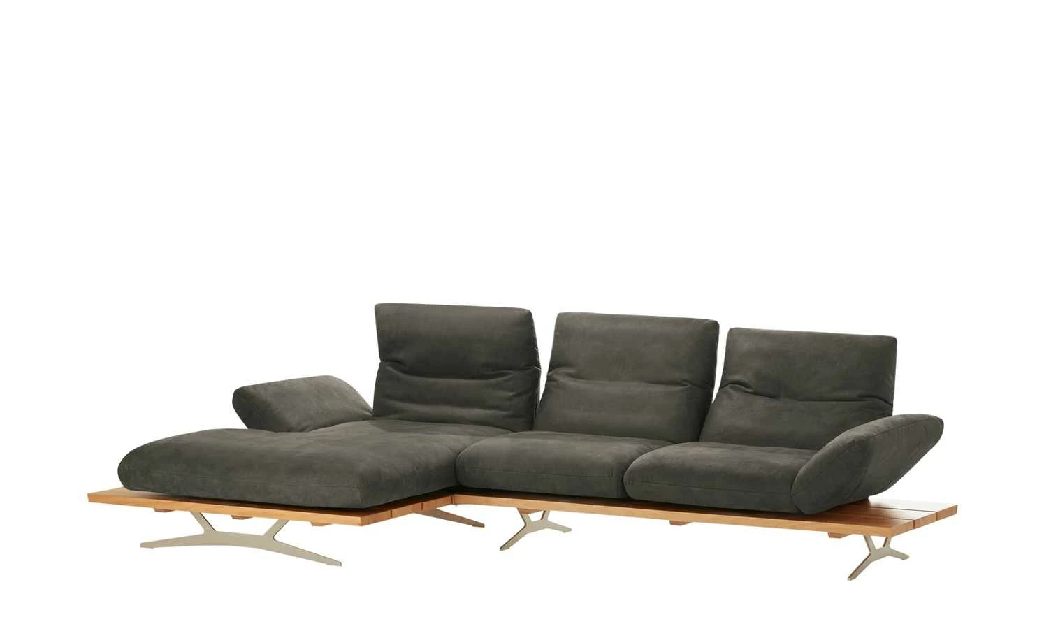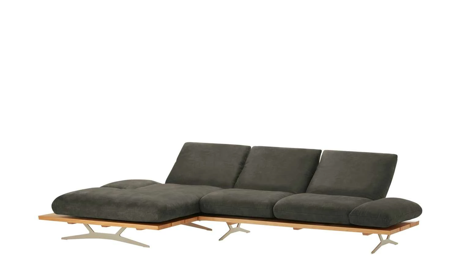 Eine faszinierende Art von Schwerelosigkeit erzeugt das Ecksofa Marilyn durch sein natürliches Holzplateau. Schmale Schwertkufen aus satiniertem Nickel tragen das massive Kernbuchenholz, auf dem die multifunktionalen Polster aufliegen. Eine weiche Mikrofaser in authentischer Leder-Optik komplettiert das Zusammenspiel. Verstellen Sie die Kopfteile und Armlehnen ganz nach Ihren Wünschen. Die ausgeklügelte Dreh- und Schiebefunktion ermöglicht individuelle Sitzpositionen. Die einzelnen Sitzflächen können Sie ganz einfach auseinander ziehen, wodurch drei separate Sitzgelegenheiten entstehen. Wie für Möbel der Marke KOINOR üblich, sind sämtliche Hebel und Griffe direkt im Sofa integriert, damit die Optik nicht gestört wird. Entscheiden Sie sich für eine von vielen modernen Farben und erleben Sie ein ganz neues Raumgefühl.