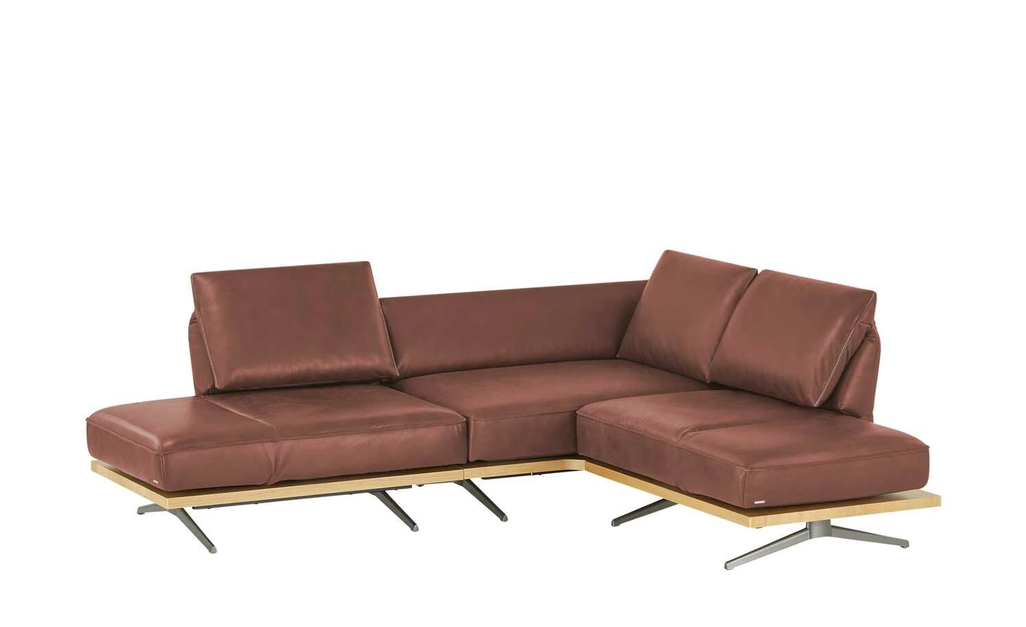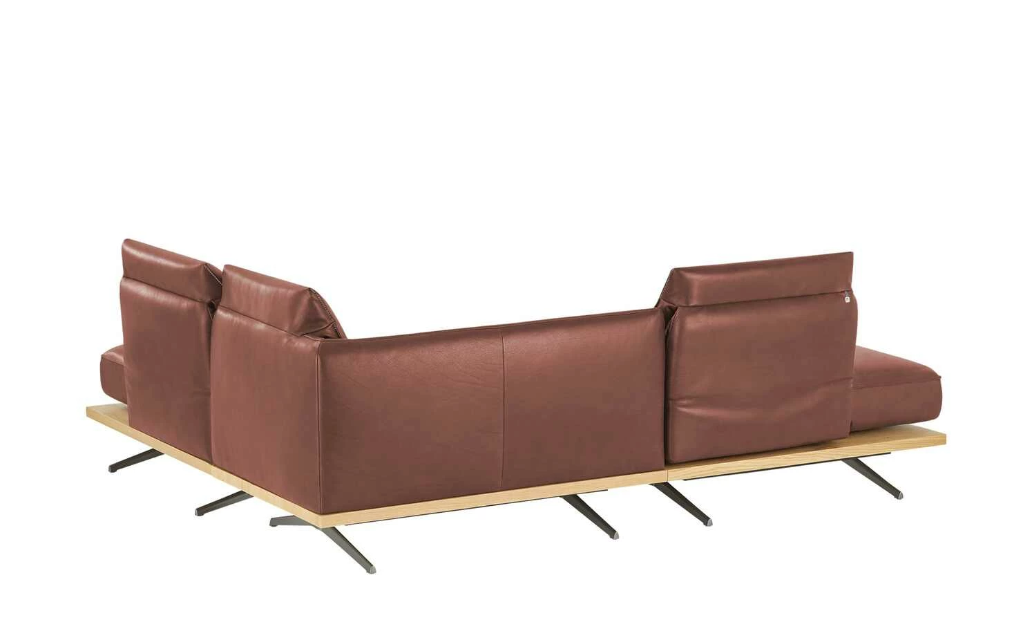 Beim Ecksofa Phoenix vereinigen sich ausgeklügelte Funktionen und exklusives Design. Dieses Zusammenspiel und liebevolle Details machen das Ecksofa Phoenix zu einem absoluten Lieblingsmöbelstück. Weiches Anilinleder zeigt die Original-Beschaffenheit der Haut. Eine dekorative Kontrastnaht setzt attraktive Akzente. Die handgearbeiteten Polster liegen auf einem Massivholz-Plateau aus Wildeiche auf. Bronzierte Schwertkufen tragen das Plateau und scheinen das Sofa schweben zu lassen. Klappen Sie die Kopfteile und die Armlehnen ganz einfach um: Phoenix passt sich Ihren Bedürfnissen ganz individuell an.