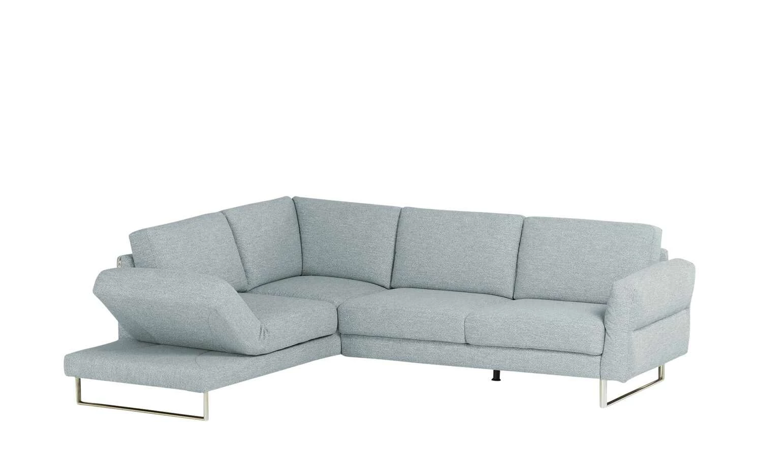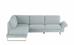 Moderne Elemente und zeitgemäße Funktionen machen das Ecksofas Upgrade von KOINOR zu einem absolut stilsicheren Komfortmöbel. Glänzende Metallkufenfüße aus satiniertem Nickel tragen das einladende Ecksofa und harmonieren mit dem attraktiven Bezug aus strapazierfähigem, sorgfältig verarbeitetem Flachgewebe. Nehmen Sie Platz und erschaffen Sie mit der äußeren, schwenkbaren Sitzfläche eine praktische Ottomane. Die schwenkbare Sitzfläche und auch die Armlehne auf der anderen Seite lassen sich mit nur einem Handgriff hoch- und umklappen. So passt sich das Ecksofa Upgrade immer genau Ihren Wünschen und Bedürfnissen an. Entscheiden Sie sich für Ihre Lieblingsbezugsfarbe und ergänzen Sie das Sofa mit den Nieren- und Dekokissen von Upgrade. Auch Kopfstützen für Upgrade sind separat erhältlich und passen perfekt zum Ecksofa. Unikate gefertigt in Bayern: Die Marke KOINOR steht für einzigartige Komfortfunktionen und individuelles Design. Unter Verwendung hochwertigster Materialien entstehen Möbel mit Vorzeigecharakter.
