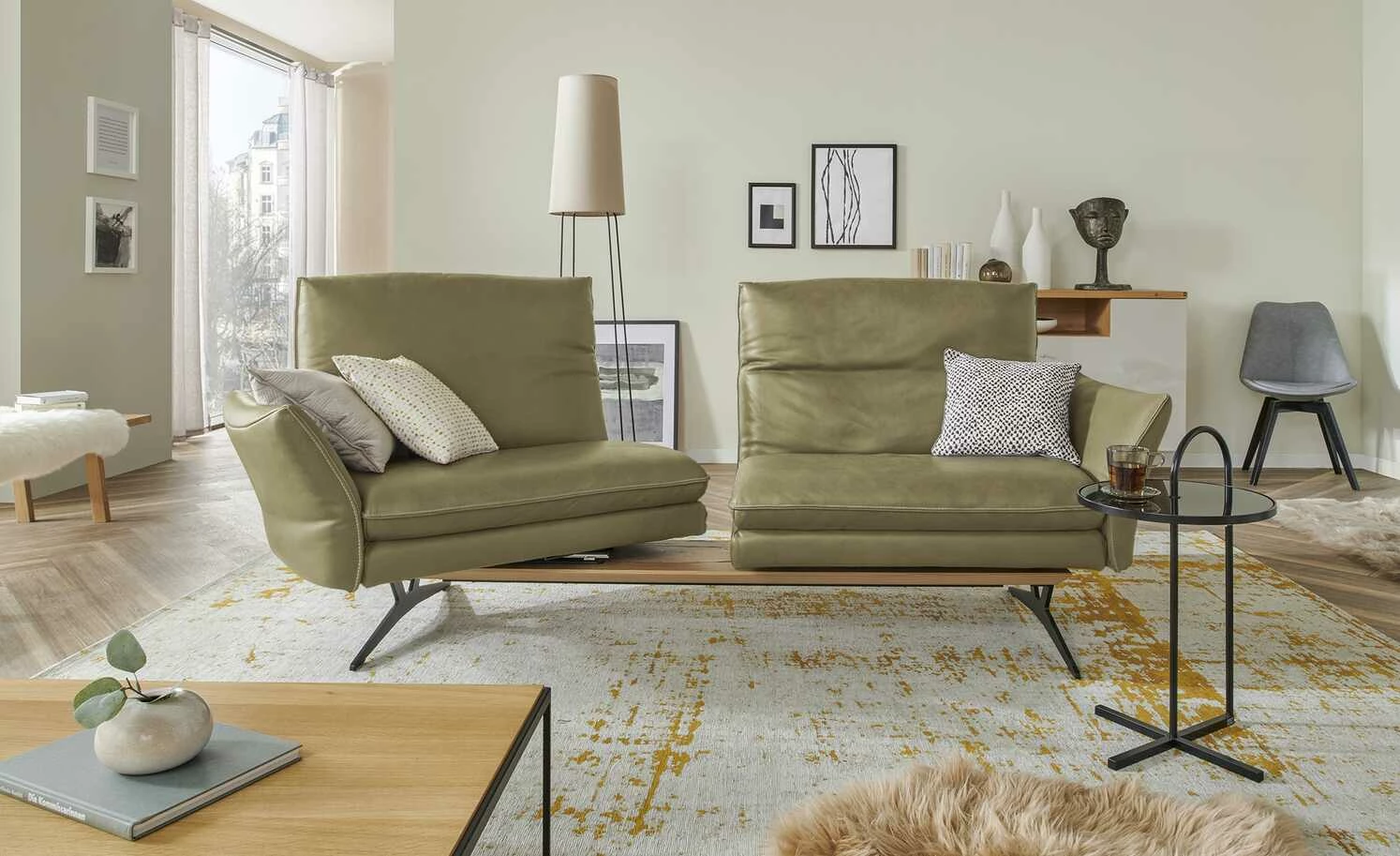 Das Markensofa Mikkl Move verspricht ein dynamisches Sitzerlebnis, das Komfort und Funktion aufs nächste Level bringt. Beide Sitzbereiche sind separat voneinander nutzbar und warten mit einzigartigen Funktionen auf. Drehen Sie die beiden Sitze in die gewünschte Position: Mikkl Move passt sich Ihrem Raumkonzept und Lebensstil mühelos an. Verstellen Sie außerdem die Rückenlehnen, das Kopfteil und die Armlehne. Alle Funktionen sind intuitiv bedienbar und kommen ohne störende Knöpfe und Hebel aus. Wählen Sie die Version mit erweiterter Funktion, um außerdem von der integrierten Gasdruckfeder und dem Drehstopp zu profitieren. So runden Sie Ihr Komforterlebnis optimal ab. Die beiden Funktionspolster liegen auf einem hochwertig furnierten Plateau auf, das mit liebevollen Details versehen ist. Getragen wird das Sofa Mikkl Move von filigranen, mattschwarzen Metall-Kufenfüßen. Dadurch verbindet es loftige Eleganz mit zeitgemäßem Design. Den hochwertigen Echtlederbezug gibt es in zahlreichen modernen Farben. Unikate gefertigt in Bayern: Die Marke KOINOR steht für einzigartige Komfortfunktionen und individuelles Design. Unter Verwendung hochwertigster Materialien entstehen Möbel mit Vorzeigecharakter.