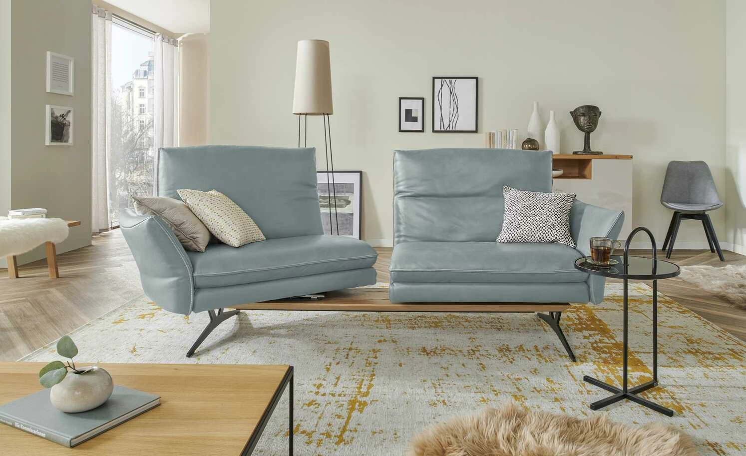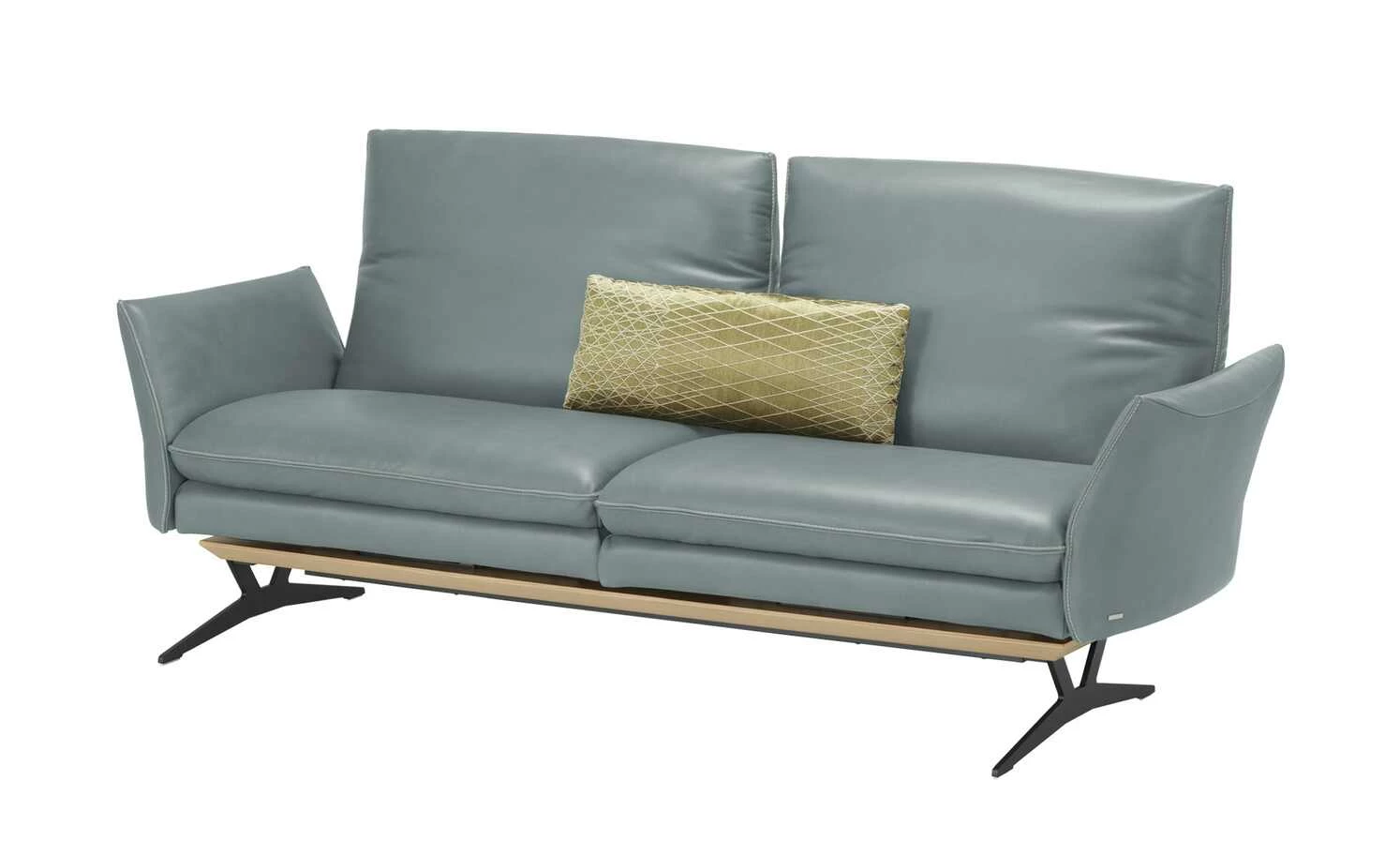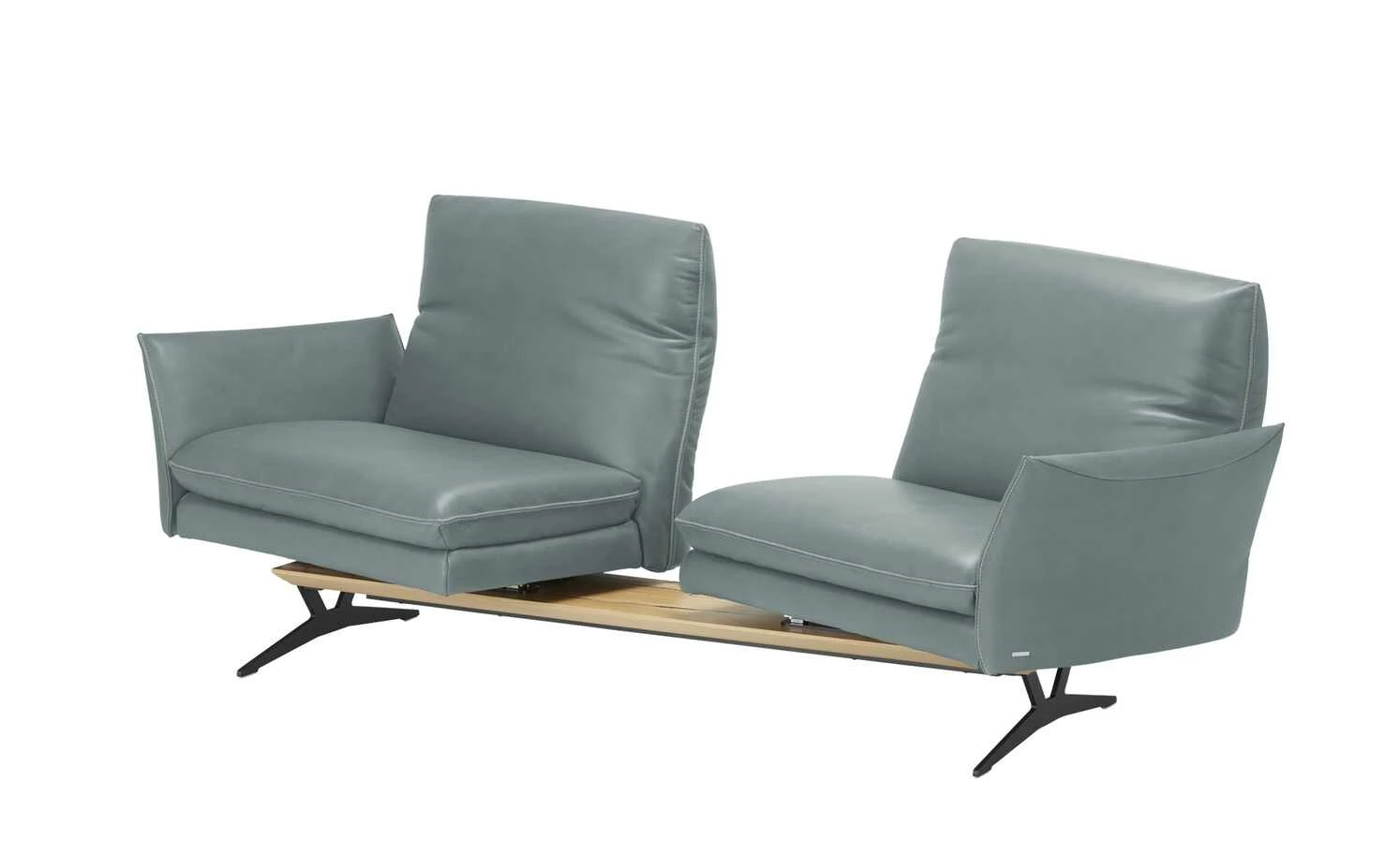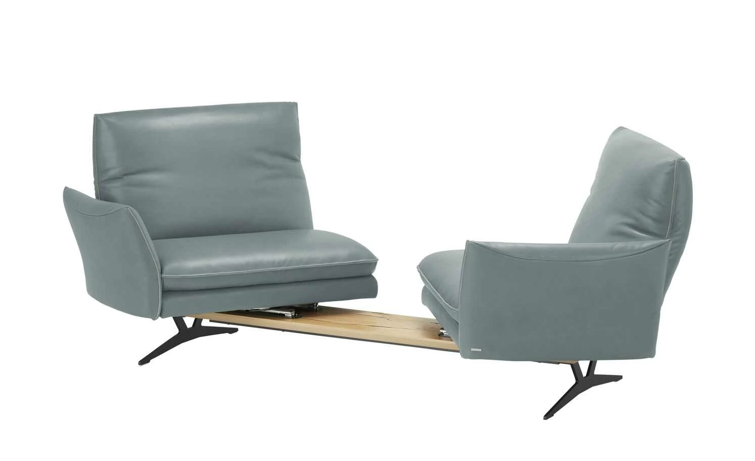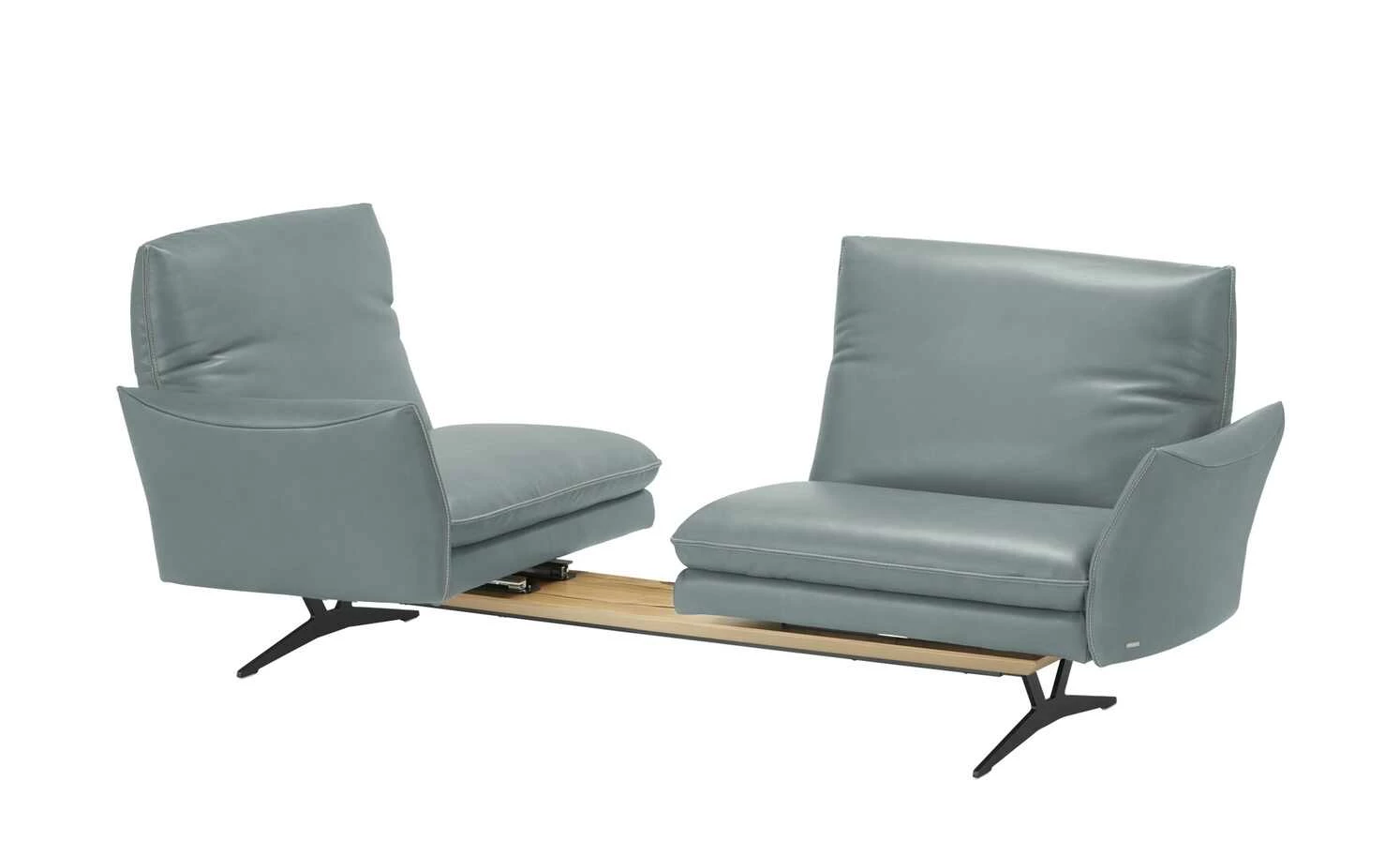 Das Markensofa Mikkl Move verspricht ein dynamisches Sitzerlebnis, das Komfort und Funktion aufs nächste Level bringt. Beide Sitzbereiche sind separat voneinander nutzbar und warten mit einzigartigen Funktionen auf. Drehen Sie die beiden Sitze in die gewünschte Position: Mikkl Move passt sich Ihrem Raumkonzept und Lebensstil mühelos an. Verstellen Sie außerdem die Rückenlehnen, das Kopfteil und die Armlehne. Alle Funktionen sind intuitiv bedienbar und kommen ohne störende Knöpfe und Hebel aus. Wählen Sie die Version mit erweiterter Funktion, um außerdem von der integrierten Gasdruckfeder und dem Drehstopp zu profitieren. So runden Sie Ihr Komforterlebnis optimal ab. Die beiden Funktionspolster liegen auf einem hochwertig furnierten Plateau auf, das mit liebevollen Details versehen ist. Getragen wird das Sofa Mikkl Move von filigranen, mattschwarzen Metall-Kufenfüßen. Dadurch verbindet es loftige Eleganz mit zeitgemäßem Design. Den hochwertigen Echtlederbezug gibt es in zahlreichen modernen Farben. Unikate gefertigt in Bayern: Die Marke KOINOR steht für einzigartige Komfortfunktionen und individuelles Design. Unter Verwendung hochwertigster Materialien entstehen Möbel mit Vorzeigecharakter.