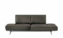 Beim Liegensofa Phoenix trifft moderne Vielseitigkeit auf höchsten Komfort. Auf einem schwerelos anmutenden Plateau in dunkler Stein-Optik liegen edle Polster aus weichem Anilinleder auf. Die einzigartige Struktur der Haut und ein dekorativer Keder machen das Liegensofa zu einem echten Unikat. Mattschwarze Metall-Schwertkufen greifen den elegant-modernen Look gekonnt auf und verleihen dem Sofa ein Gefühl von schwereloser Leichtigkeit. Verstellen Sie ganz einfach die Armlehnen und klappen Sie die Kopfteile hoch: Das Liegensofa Phoenix erfüllt problemlos Ihre Komfort-Ansprüche. Auch die Rückenlehnen lassen sich kinderleicht per Knopfdruck nach hinten klappen. Wie für die Marke KOINOR üblich, sind alle Verstell-Elemente dezent in den Bezug eingearbeitet und stören die Optik nicht.