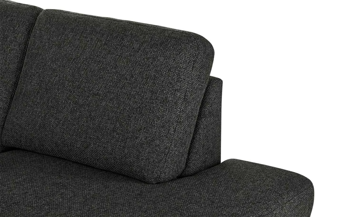 Beim Ecksofa Maximum Plus ist der Name Programm, denn es bietet ein Plus an Komfort. Das Sofa ist mit einem hochwertigen PUR-Schaum gepolstert. Der gesamte Sitzbereich wird zusätzlich durch eine Wellenunterfederung unterstützt. Dank der L-Form bietet die Couch viel Platz zum Entspannen und sogar zum Hochlegen der Beine. Das Sofa ist rundherum mit einem melierten Webstoff in Graphitgrau bezogen. So macht es von allen Seiten eine gute Figur.
