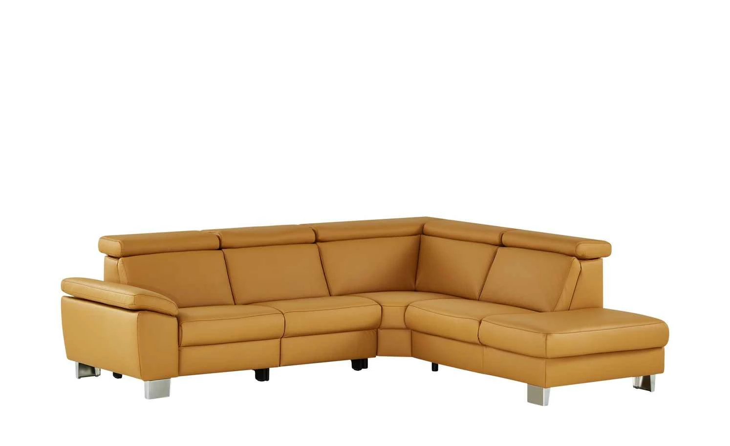 Beata ist ein elegantes Ecksofa der Marke meinSofa. Es besteht aus besten Materialien und ist hochwertig verarbeitet. Für den Bezug ist feinstes Echtleder verwendet worden. Es hat eine attraktive, natürliche Narbung und fühlt sich weich an. Beata verfügt über eine dicke Polsterung und eine Rückenlehne in Komforthöhe, damit Sie es bequem haben. Durch die L-Form verfügt die Couch über viel Platz zum Sitzen oder Ausstrecken. Legen Sie doch bequem die Beine hoch. Vier Kopfstützen und die Armlehne können Sie in der Position verstellen. Zwei der Sitze sind mit einer Wall-Away-Funktion ausgestattet. Dabei klappt die Rückenlehne nach hinten und das Fußteil fährt nach vorne aus. Der integrierte Stauraum eignet sich zum Verstauen von Kissen und Decken.