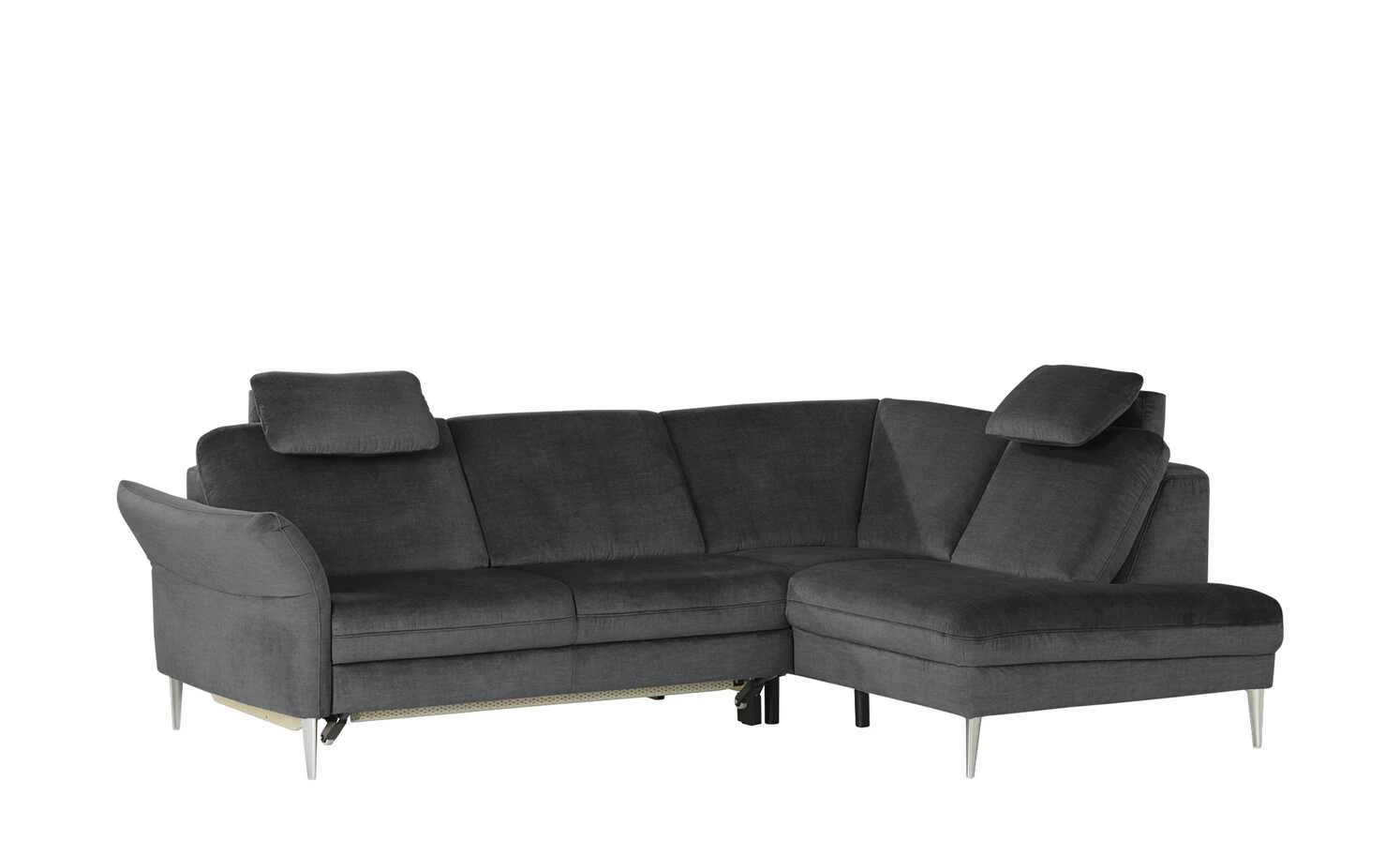 Das Ecksofa Helen verschafft Ihnen ein hohes Maß an Gemütlichkeit. In meinSofa-Markenqualität steht das Sofa für einzigartigen Sitzkomfort und geschmackvolles Design. Die manuelle Armteilverstellung und die Kopfteilverstellung verwandeln das Sofa in Ihr neues Lieblingsmöbel. Der Bezug der Sitz- und Rückenfläche ist aus Mikrofaser gefertigt und vermittelt damit ein ansprechendes Erscheinungsbild. Das Sofa lädt auch dank der Wellenfederkerne sowie der komfortablen Polsterung aus Kaltschaum zum Wohlfühlen ein. Die aluminiumfarbenen Füße aus Metall können sich sehen lassen. Das Modell Helen wird mit der praktischen Bettfunktion zu einem komfortablen Gästebett und nimmt insgesamt 83 × 249 cm ein. Es wird durch die Sitztiefe von 54 cm zu einer wahren Oase der Erholung und weist eine Sitzhöhe von 46 cm auf. Dieses Sofa wertet jedes Zuhause auf geschmackvolle und zweckmäßige Art und Weise auf.