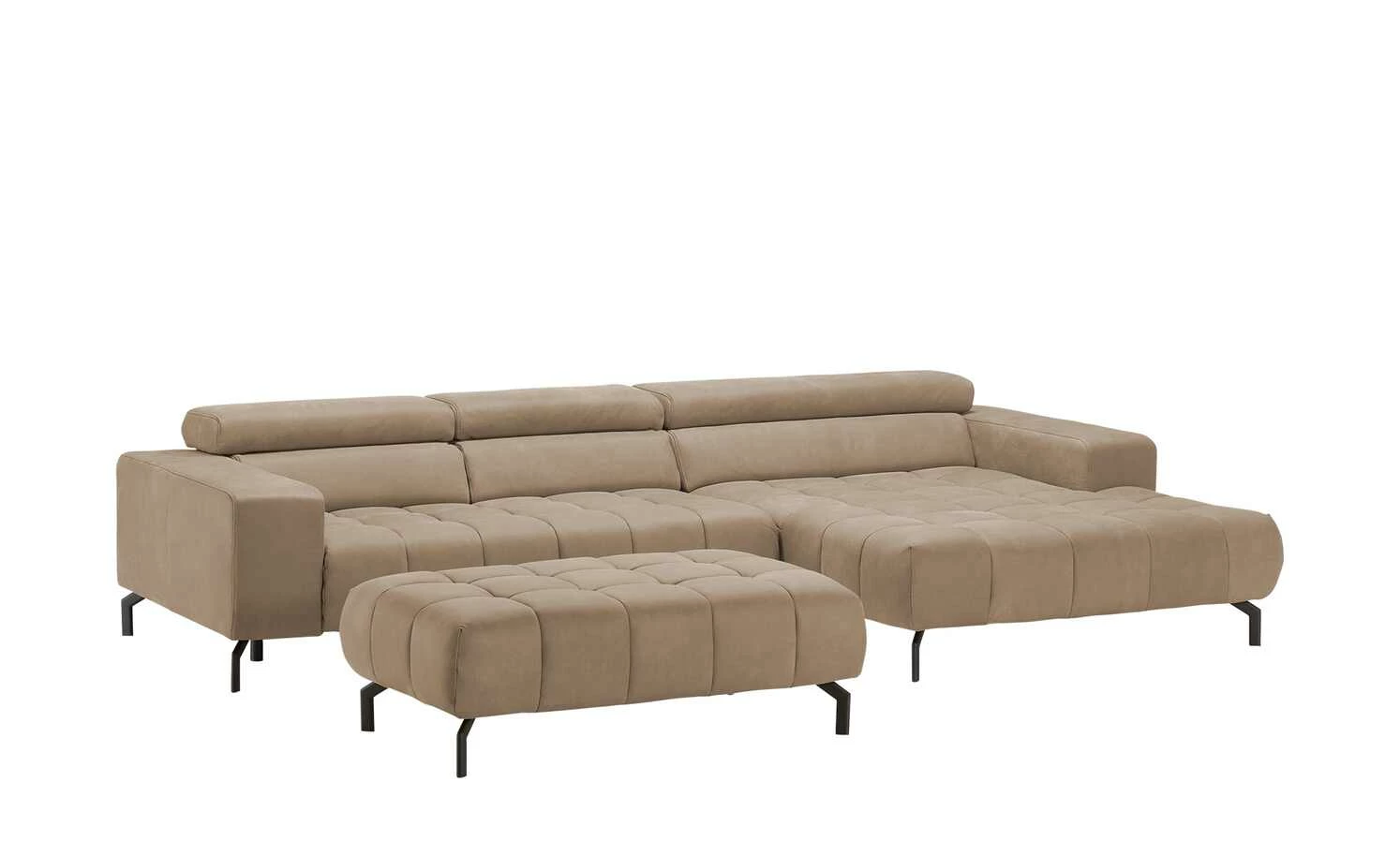Entspannt ausruhen oder sitzen lässt es sich auf dem Sofa. Das Sofa ist aufgrund der manuellen Kopfstützenverstellung extrem komfortabel. Durchdachtes Design und ein einzigartiges Sitzerlebnis machen dieses Sofa in meinSofa-Markenqualität aus. Das Sofa verfügt über eine Ottomane auf der rechten Seite und nimmt insgesamt 74 × 321 cm ein. Das Sofa wird im Handumdrehen zur reliablen Oase des Komforts, welche Ihre vier Wände optisch wie funktionell aufzuwerten weiß.