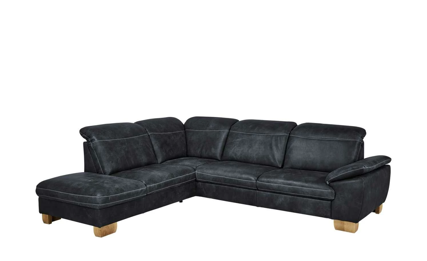 Mit hochwertigem Echtleder ist das Ecksofa Raica bezogen. Das Leder hat eine attraktive Vintage-Optik die mit beigen Kontrastnähten akzentuiert wird. Auch die Füße aus massiver Wildeiche setzen sich vom Bezug ab. Für den Komfort beim Relaxen ist Raica mit einem Federkern und einer Wellenunterfederung ausgestattet.