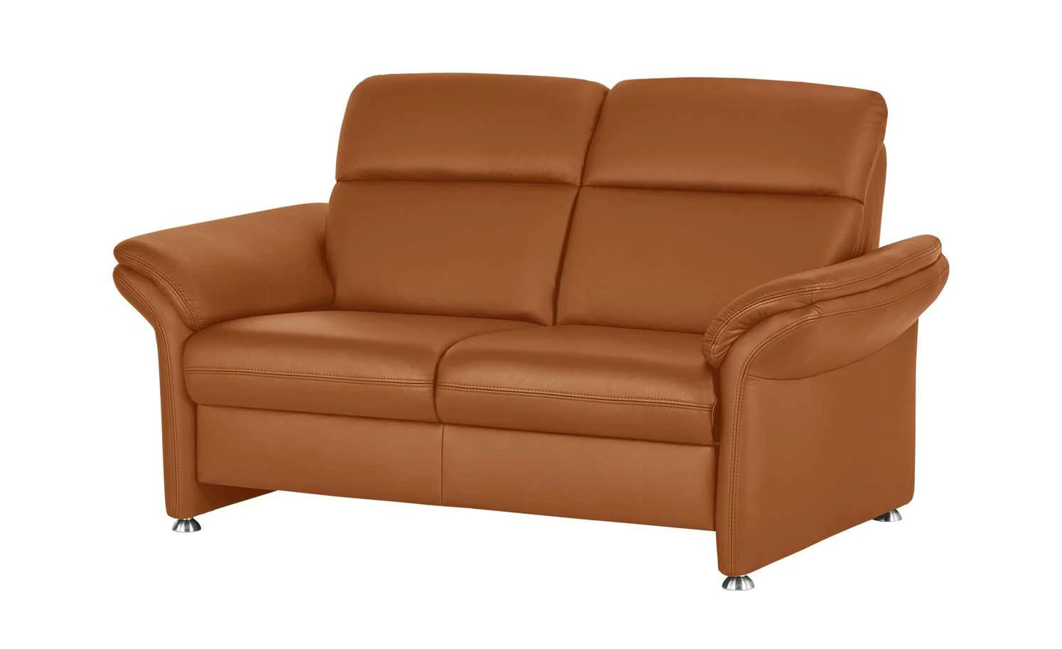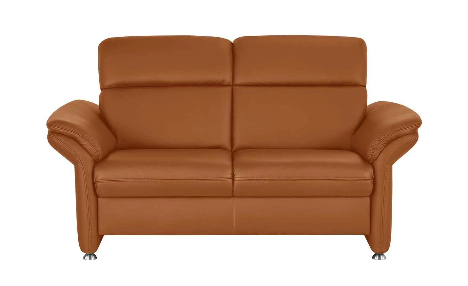 Der Zweisitzer Manon sticht durch seinen glänzenden Lederbezug sofort ins Auge. Das hochwertige Echtleder umhüllt das gesamte Sofa – Sie können Manon daher auch problemlos frei im Raum platzieren. Für ein Plus an Komfort sorgen die langlebige Federkernpolsterung und die Wellenunterfederung. Das Ledersofa besitzt dezente Metallfüße, die den edlen Gesamtlook abrunden.