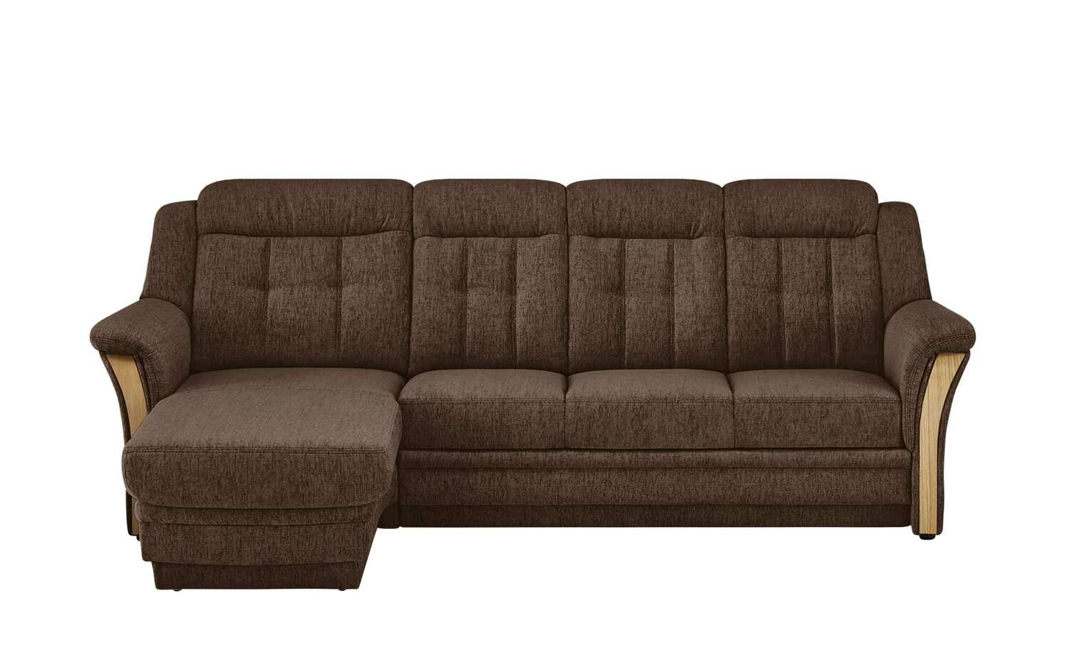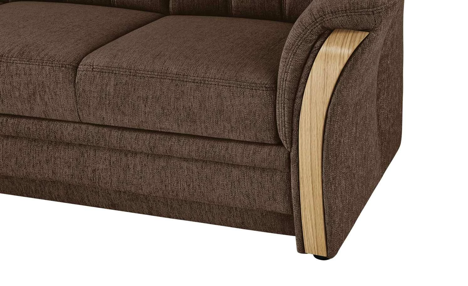 Das Ecksofa Andorra sticht durch seine Massivholz-Blende an beiden Armlehnen sofort ins Auge. Das helle Eichenholz setzt dabei einen bewussten Kontrast zum Bezug des Sofas. Machen Sie es sich auf dem Ecksofa Andorra gemütlich: Das weiche Flachgewebe und die hochwertige Kaltschaumpolsterung sorgen für hohen Sitzkomfort. Die Kopfteile von Andorra lassen sich ganz leicht stufenlos verstellen. Außerdem praktisch: Unter der Ottomane finden Sie einen geräumigen Bettkasten, in dem Sie zum Beispiel Zierkissen und Kuscheldecken verstauen können.