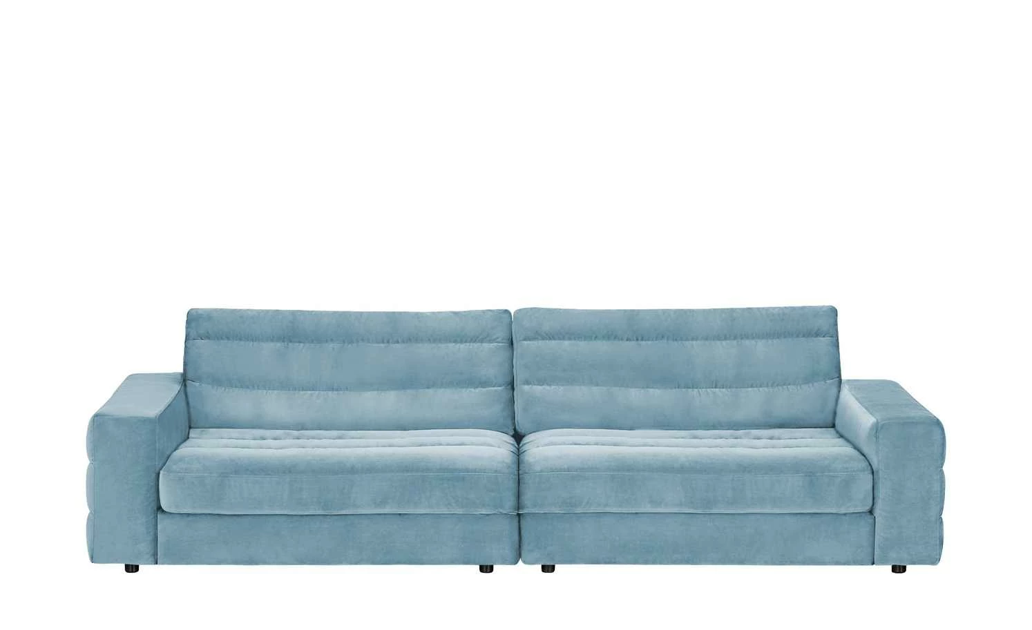 Das Big Sofa Scarlatti fällt durch seine dekorative Steppung sofort ins Auge. Die Sitzfläche, die Rückenlehne und die Außenseiten der beiden Armlehnen sind längs gesteppt und sorgen für einen modernen Look. Der samtig weiche Polyesterbezug schimmert leicht und verleiht dem Big Sofa Scarlatti einen edlen Touch. Auch die Rückseite des Sofas ist bezogen, sodass Sie Scarlatti problemlos frei im Raum platzieren können.