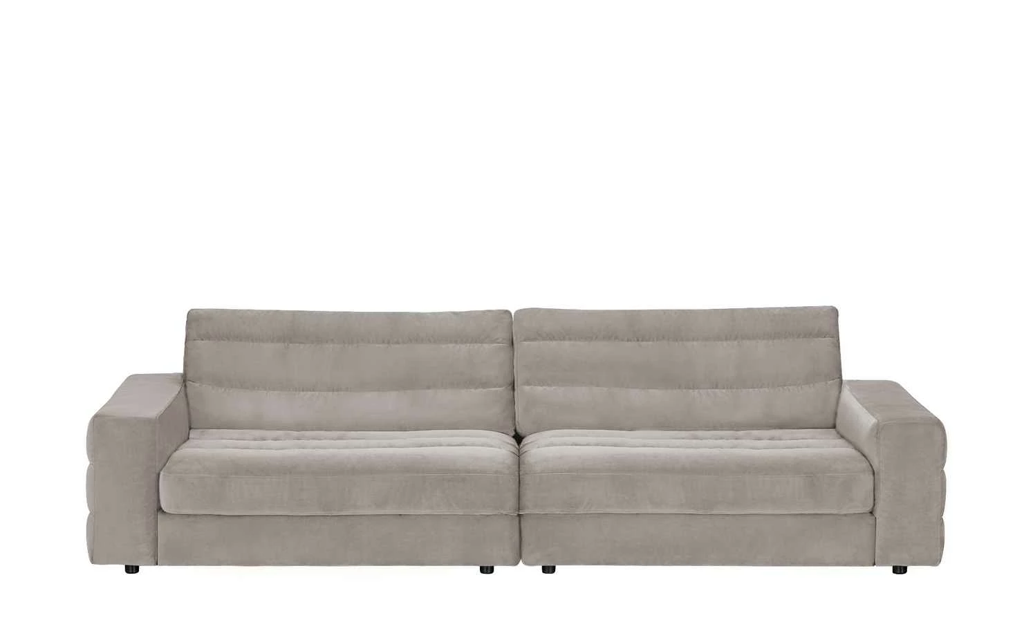 Das Big Sofa Scarlatti fällt durch seine dekorative Steppung sofort ins Auge. Die Sitzfläche, die Rückenlehne und die Außenseiten der beiden Armlehnen sind längs gesteppt und sorgen für einen modernen Look. Der samtig weiche Polyesterbezug schimmert leicht und verleiht dem Big Sofa Scarlatti einen edlen Touch. Auch die Rückseite des Sofas ist bezogen, sodass Sie Scarlatti problemlos frei im Raum platzieren können.