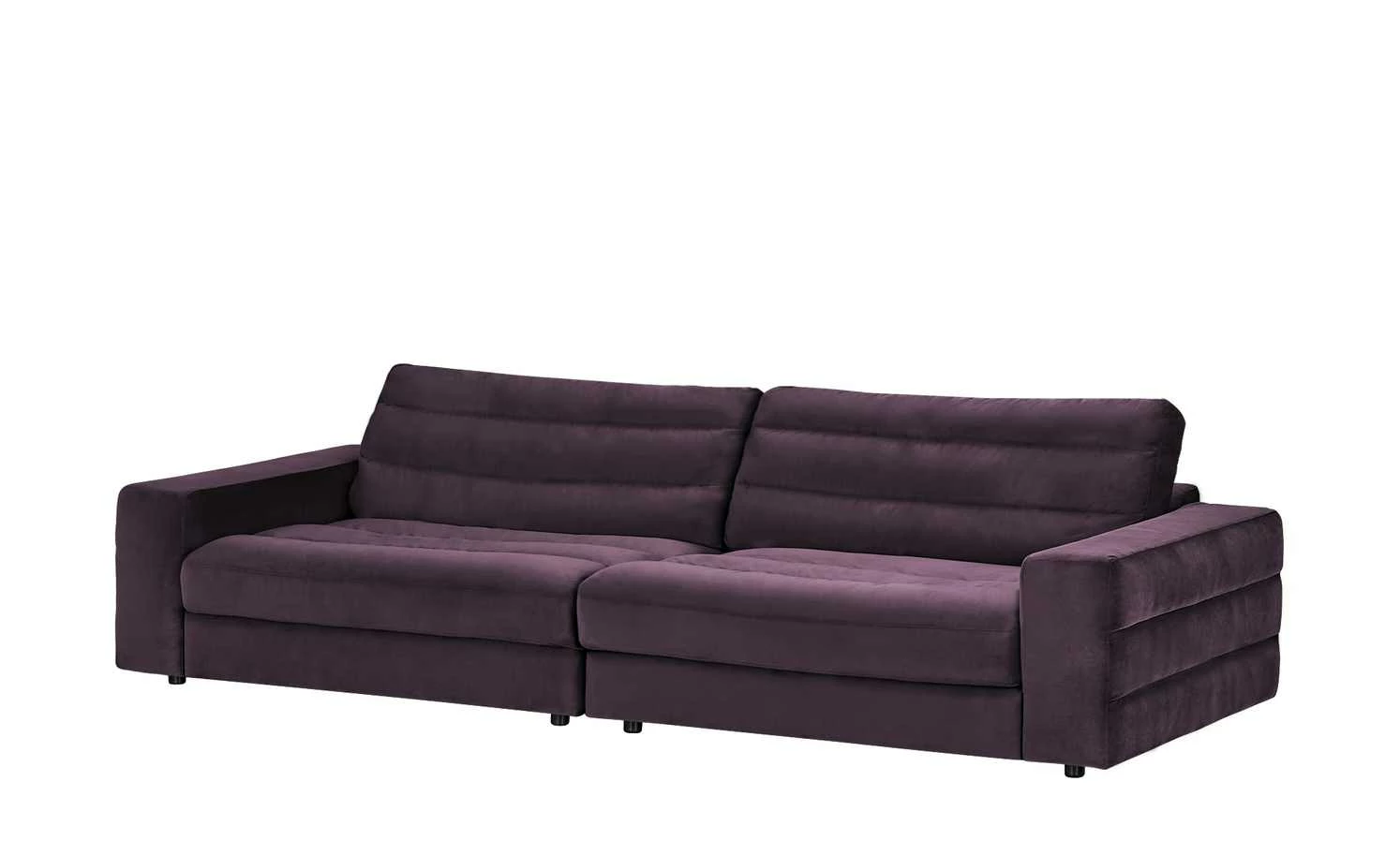 Das Big Sofa Scarlatti fällt durch seine dekorative Steppung sofort ins Auge. Die Sitzfläche, die Rückenlehne und die Außenseiten der beiden Armlehnen sind längs gesteppt und sorgen für einen modernen Look. Der samtig weiche Polyesterbezug schimmert leicht und verleiht dem Big Sofa Scarlatti einen edlen Touch. Auch die Rückseite des Sofas ist bezogen, sodass Sie Scarlatti problemlos frei im Raum platzieren können.