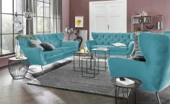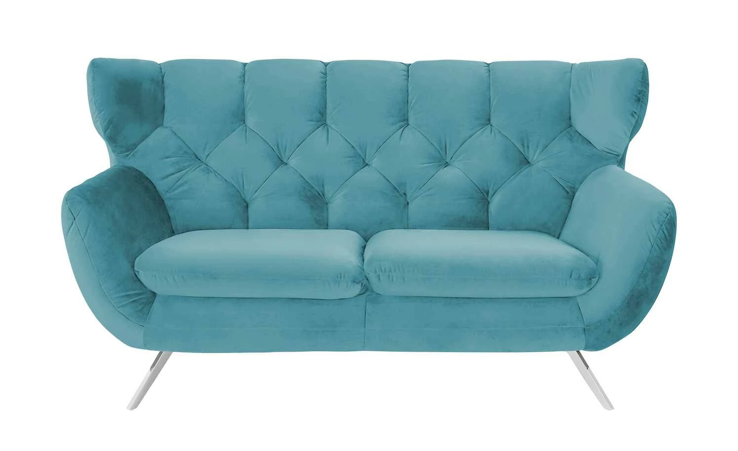 Extravagantes Design kombiniert mit hohem Sitzkomfort: Das Sofa Caldara fällt besonders durch seine hohe gesteppte Rückenlehne und den Ohren auf. Caldara ist mit hochwertigem PUR-Schaum gepolstert, der Sitzbereich wird durch eine Wellenunterfederung zusätzlich gestützt. Das verhindert ein vorzeitiges Durchsitzen. Der samtig weiche Polyesterbezug umspannt das gesamte Sofa und harmoniert mit den Metallfüßen in Chrom-Optik. Sie können Caldara daher auch problemlos mittig im Raum platzieren. Übrigens: Das Sofa gibt es in verschiedenen Varianten und kann als Sitzgruppe arrangiert werden.